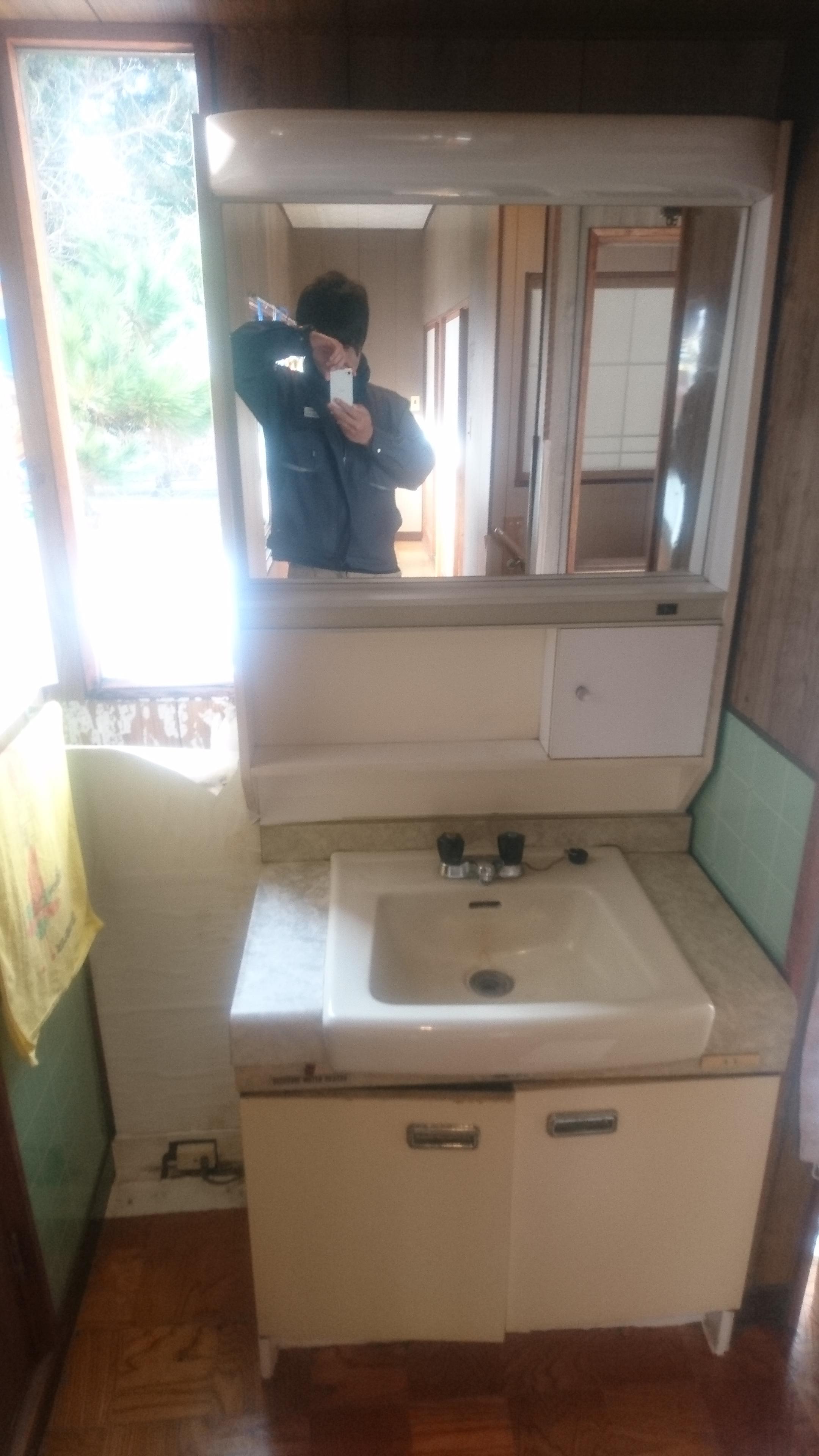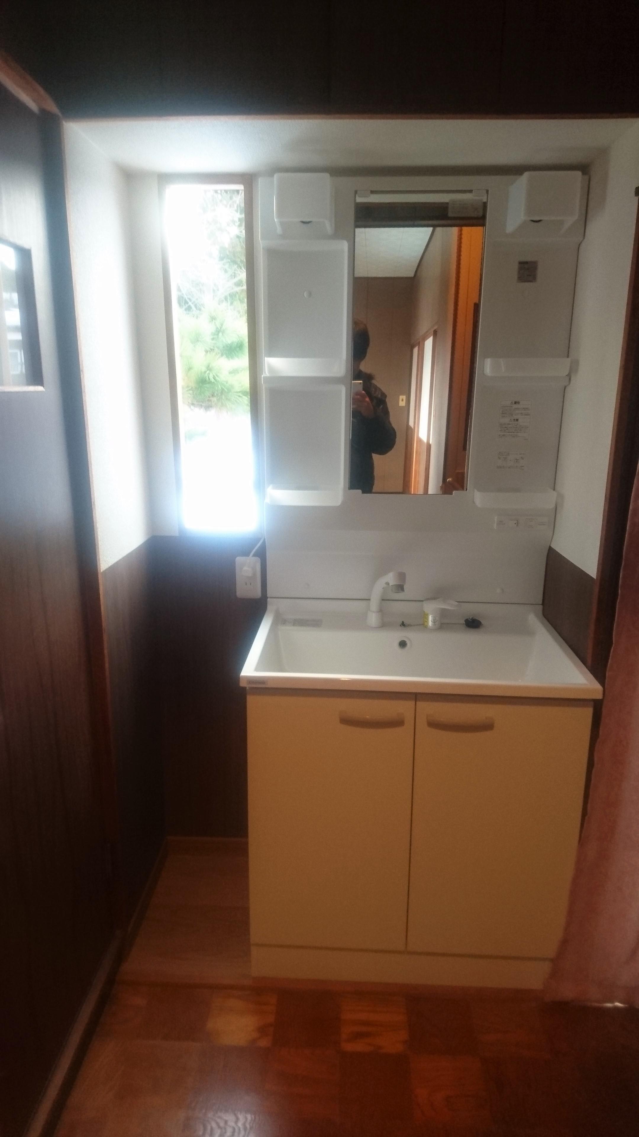 洗面化粧台の入替で収納量アップ 壁紙の張替で明るく清潔感のある空間に