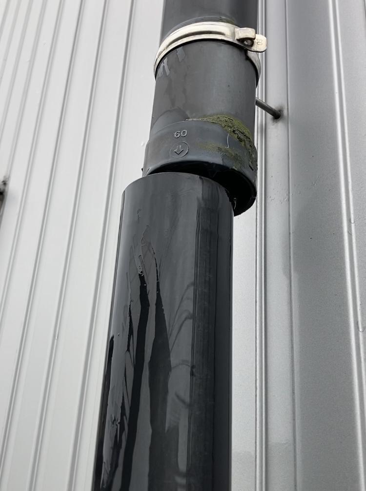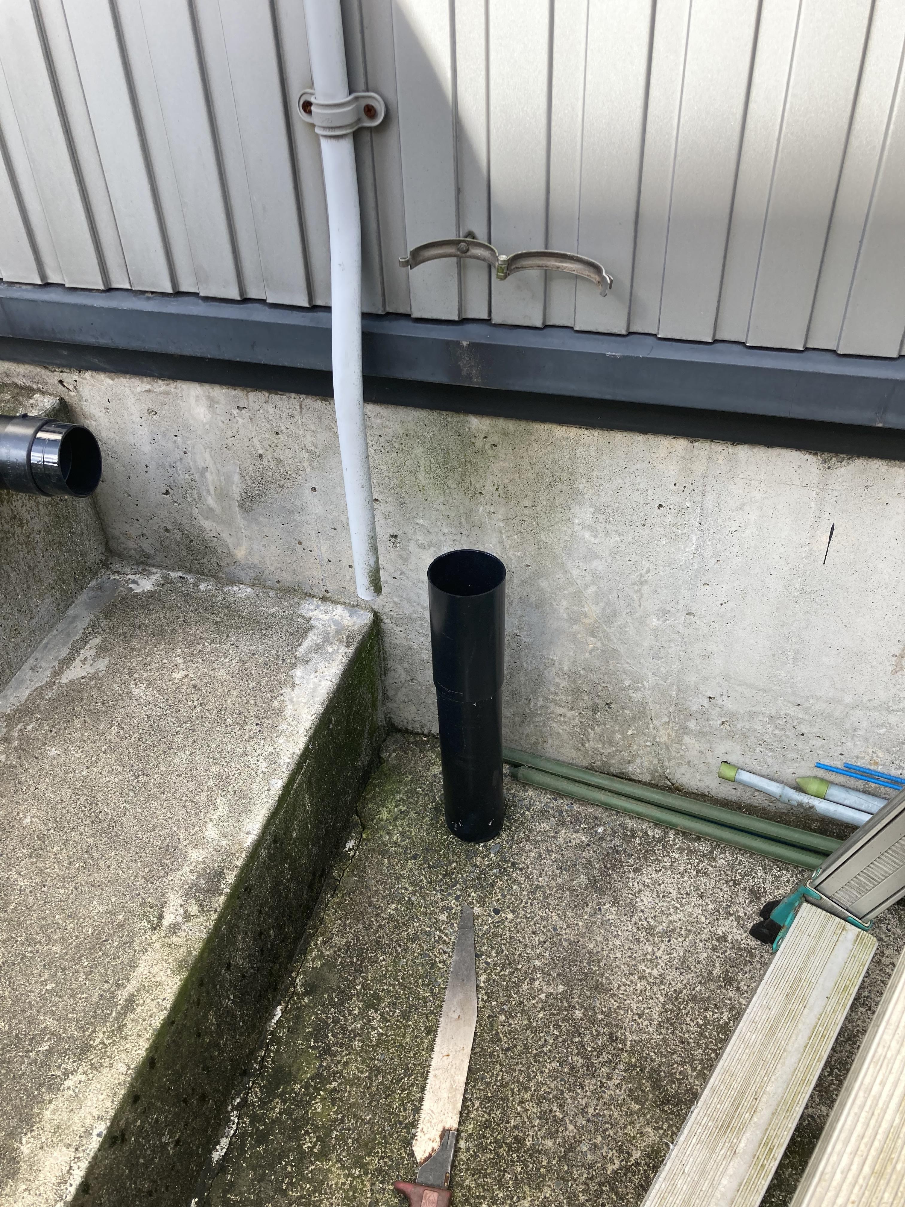 雨樋は地中配管に接続して雨水を排水している場合、長年の経年劣化や近隣の地盤沈下により破損する場合があります。 そんな時は同じ材質の伸縮部材を追加して今後に備えます。