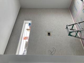 新築物件にエコカラットを施工させていただきました。 凹凸が多く細かいタイルで職人さん達にご苦労おかけしました。 ですが、天井より間接照明で照らされたエコカラットはお住いのメインスポットになるでしょう。 このあと、壁掛けテレビが設置される予定です。 ありがとうございました。