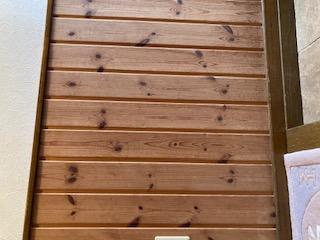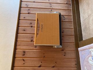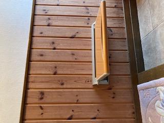 靴の脱ぎ履き、そして来客の際の椅子として便利な収納いすを取付けました。