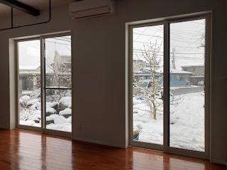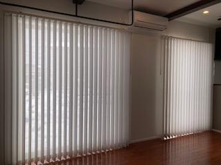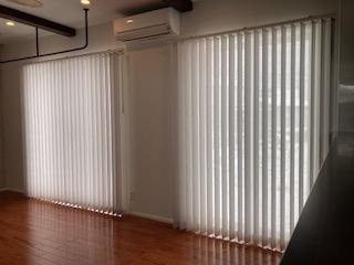 リビングの大きな窓に縦ブラインド設置!。 風になびいてゆらゆら揺れる雰囲気はとても心地よいです。