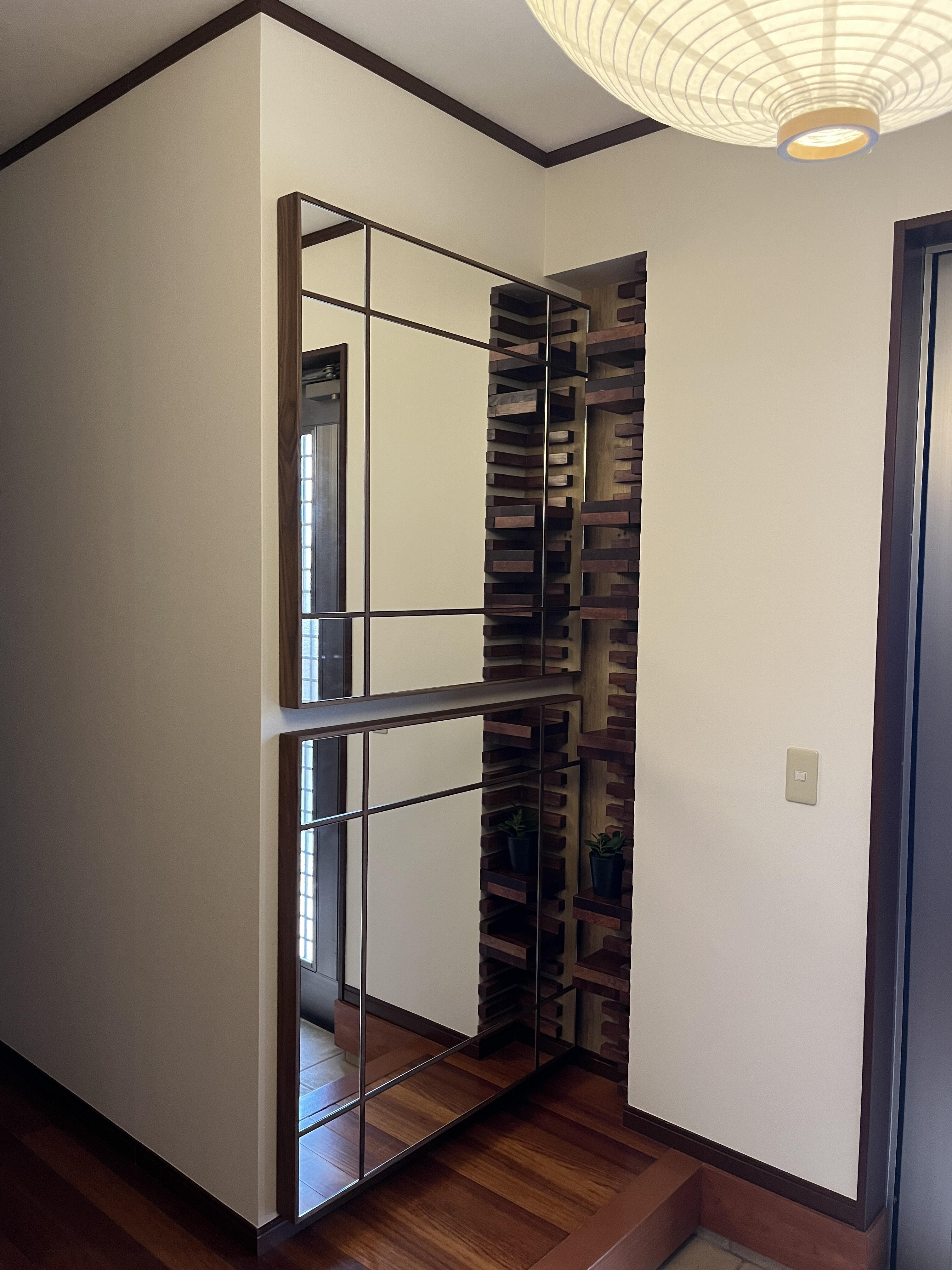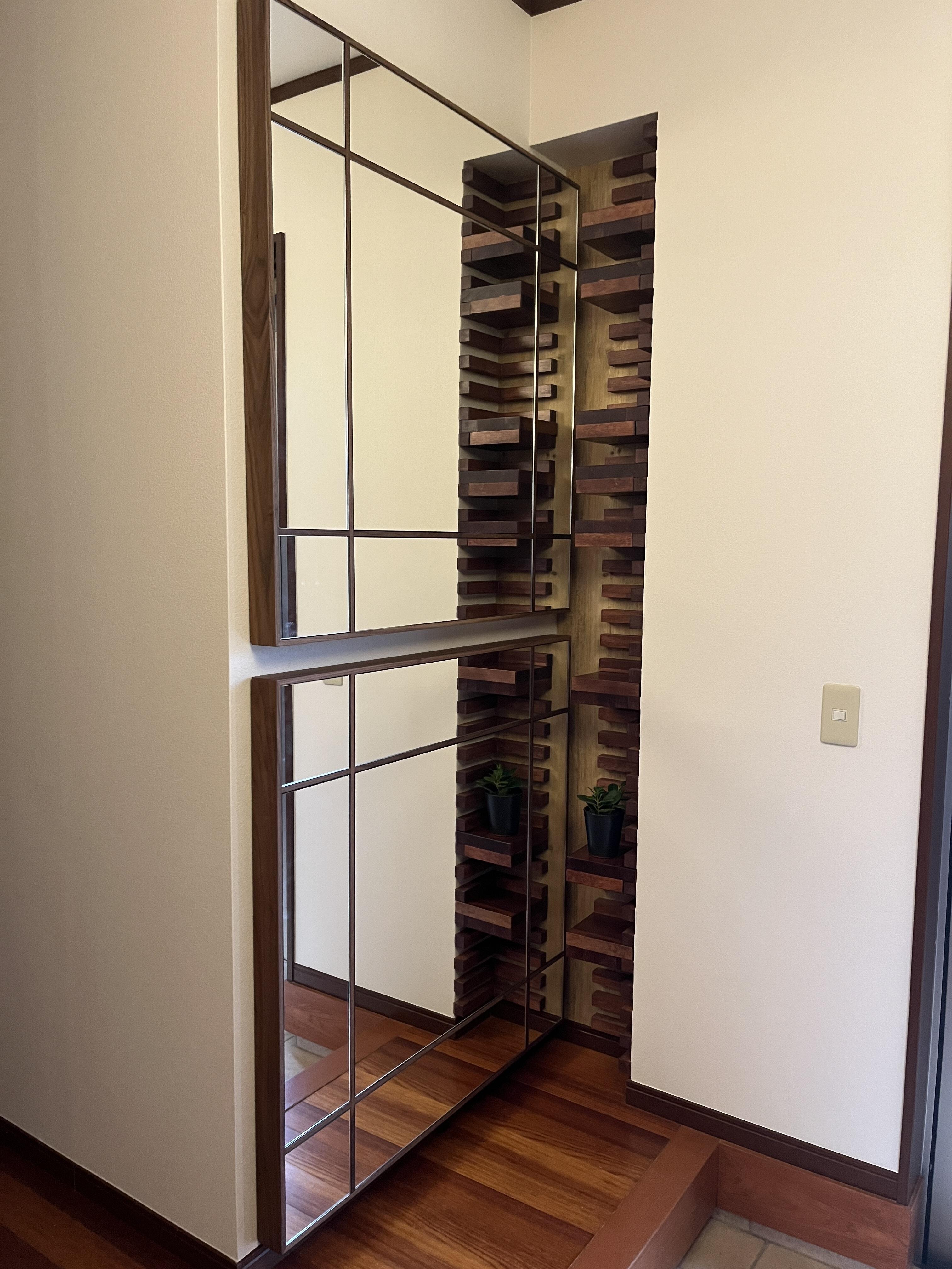 お施主様のアイデアで玄関に素敵な飾り棚ができました。