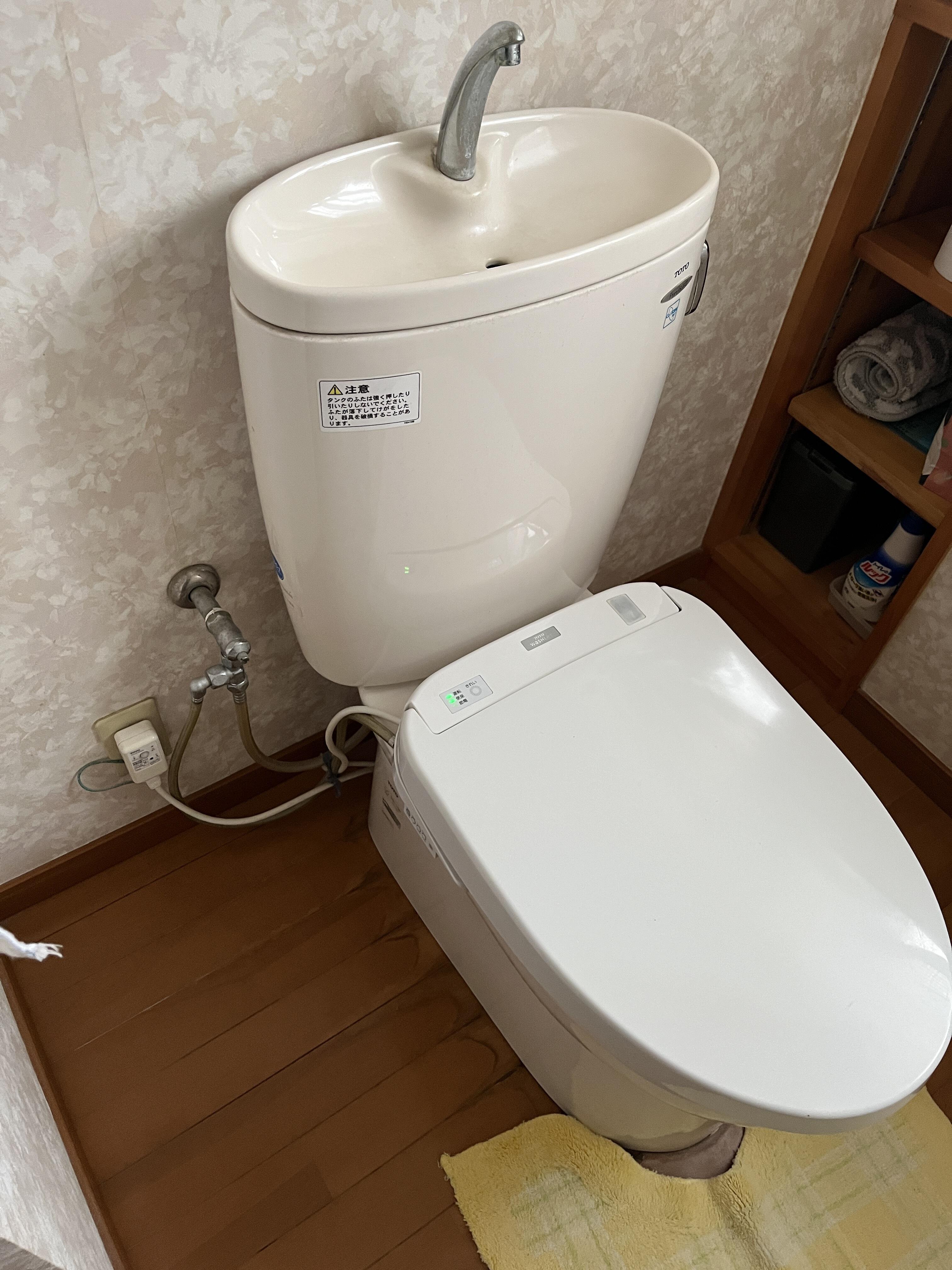 手洗いのしやすいタンク付きトイレに入替させて頂きました。