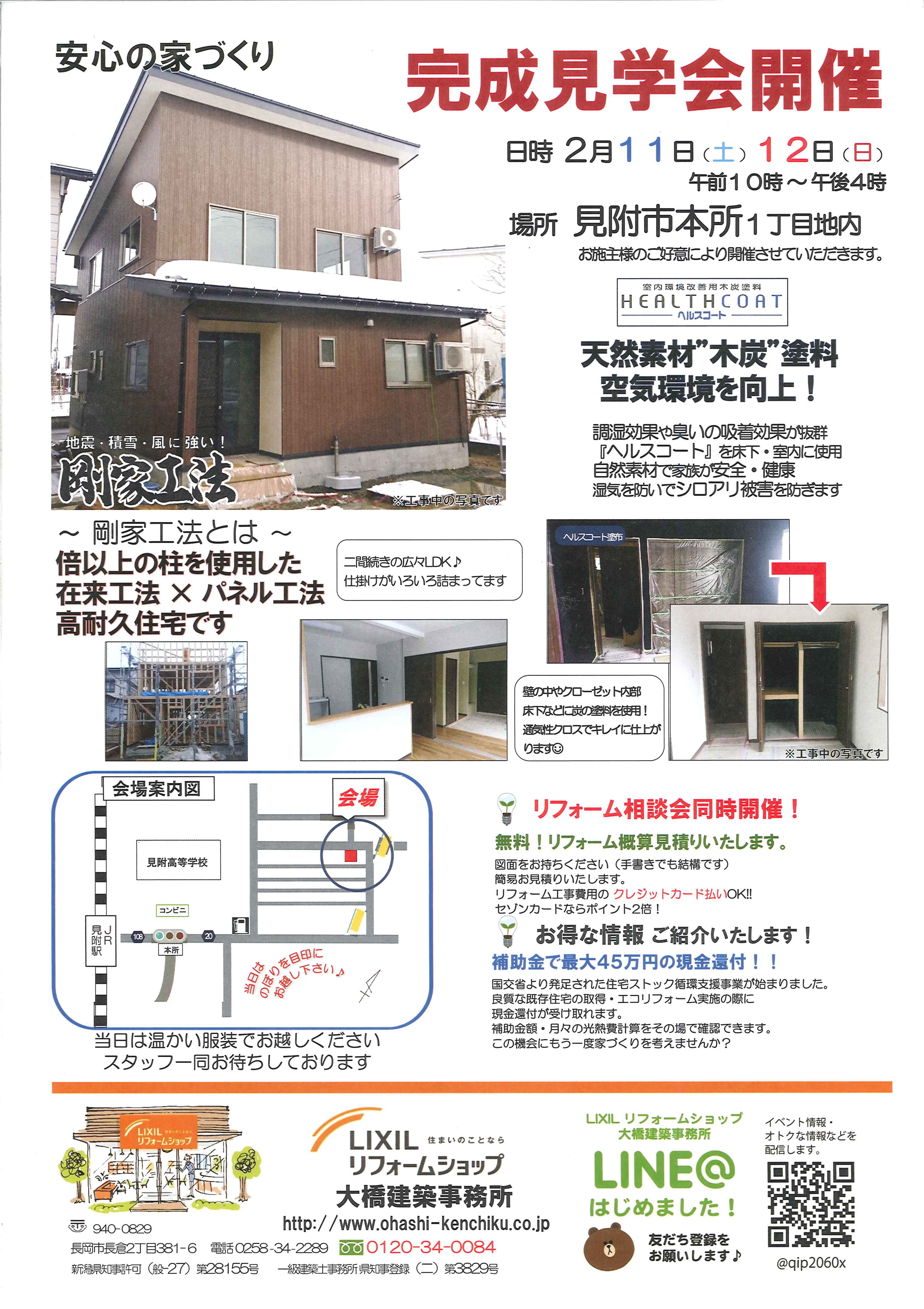 当社オリジナル工法の「剛家工法」と「ヘルスコート」を体感できる完成見学会が