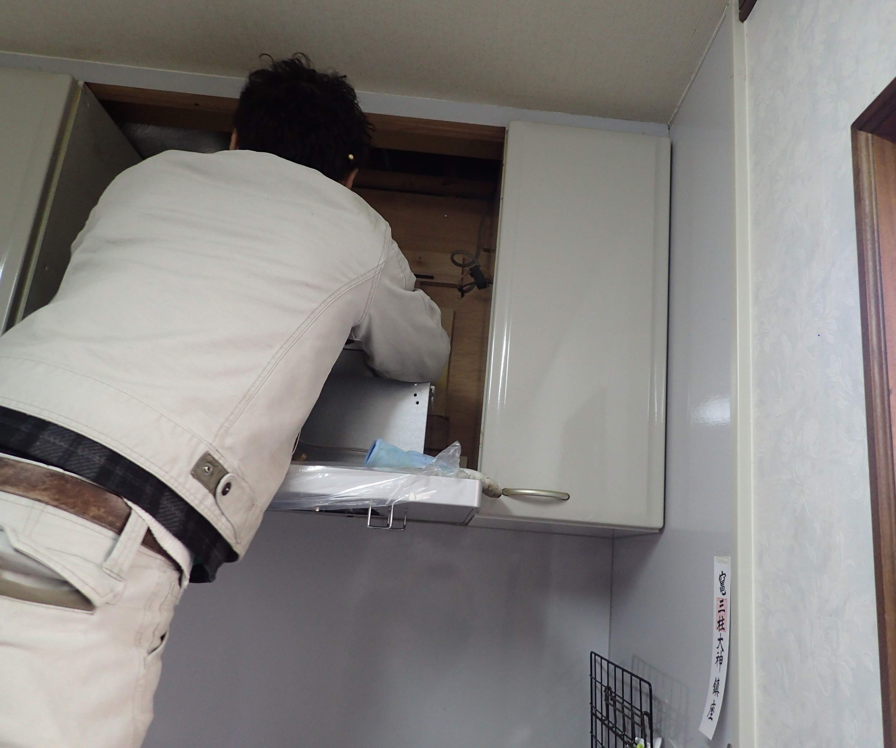 台所換気扇 取付け現場