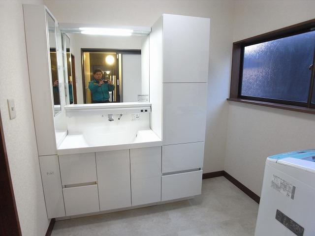 今回洗い場が広い1620タイプを設置して頂きました。カラーは高級感漂うブラックにされ、洗面化粧台は清潔感あるホワイトにされました。これからは、寒さも感じることなく、入浴時間が長くなりそうですね。