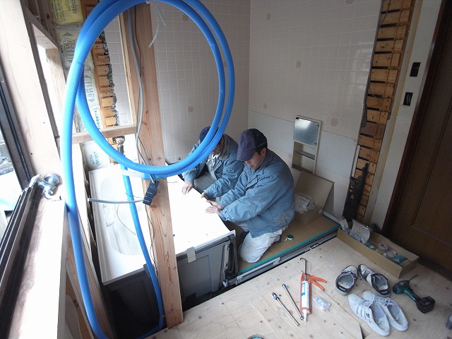 F様は現在の在来工法浴室はタイル貼りで冬は寒いとのことで、システムバスルームを設置されることとなりました。同時に脱衣室も改修し、洗面化粧台も取り替えられました。お世話になりました。※ 窓の断熱工事と併せてバリアフリー工事を行いましたので、エコポイント42000点が発行されます★【AFTER】 浴室★ システムバスルーム設置工事完了です。浴室窓の断熱工事に併せて、バリアフリー工事も行いましたので、エコポイント42000点が発行され