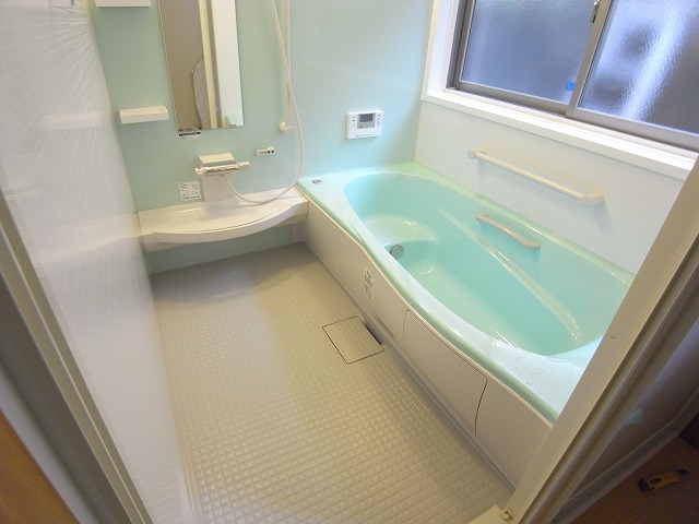 今回、O様は、リフォーム相談会のイベントに来店頂き、お風呂のリフォームをしたいとのご相談でした。脱衣場が狭く洗濯機を置く場所がないので、浴室に置かれていました。今回新しく設置した浴槽は、今までより広くなり足を伸ばして入れます。窓はペアガラスで浴室換気乾燥暖房機も取付けたので、冬も快適に入浴できます。今回は、浴室、脱衣場の工事と併せ石油給湯器をエコキュートに取替える工事も行いました。 O様、ありがとうございました。