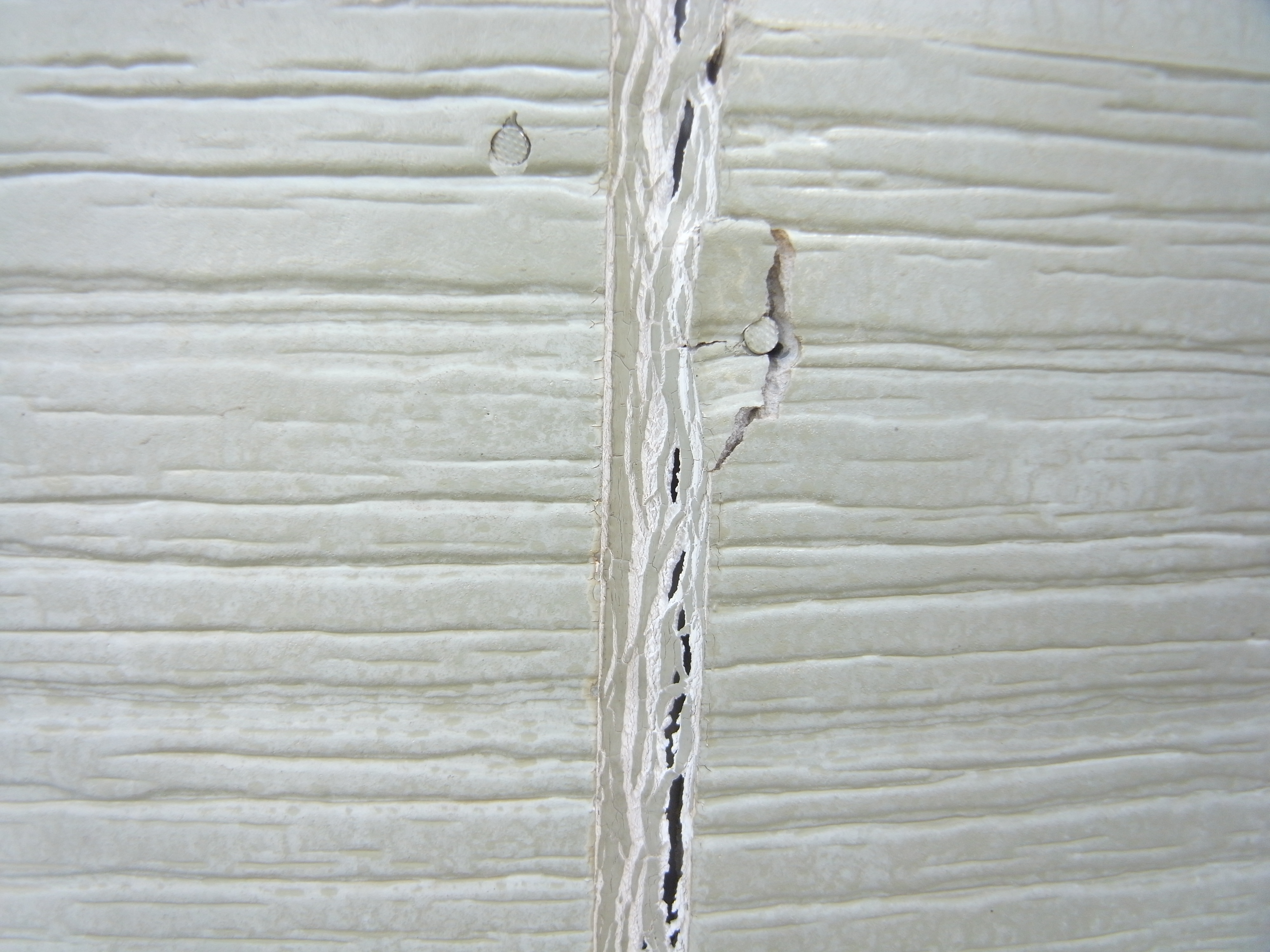 施工前のコーキングの状態です。窓廻りや外装板の継ぎ目の所がほとんど、この状態でした。こうなると、ここから雨が入り雨漏りの原因になります。