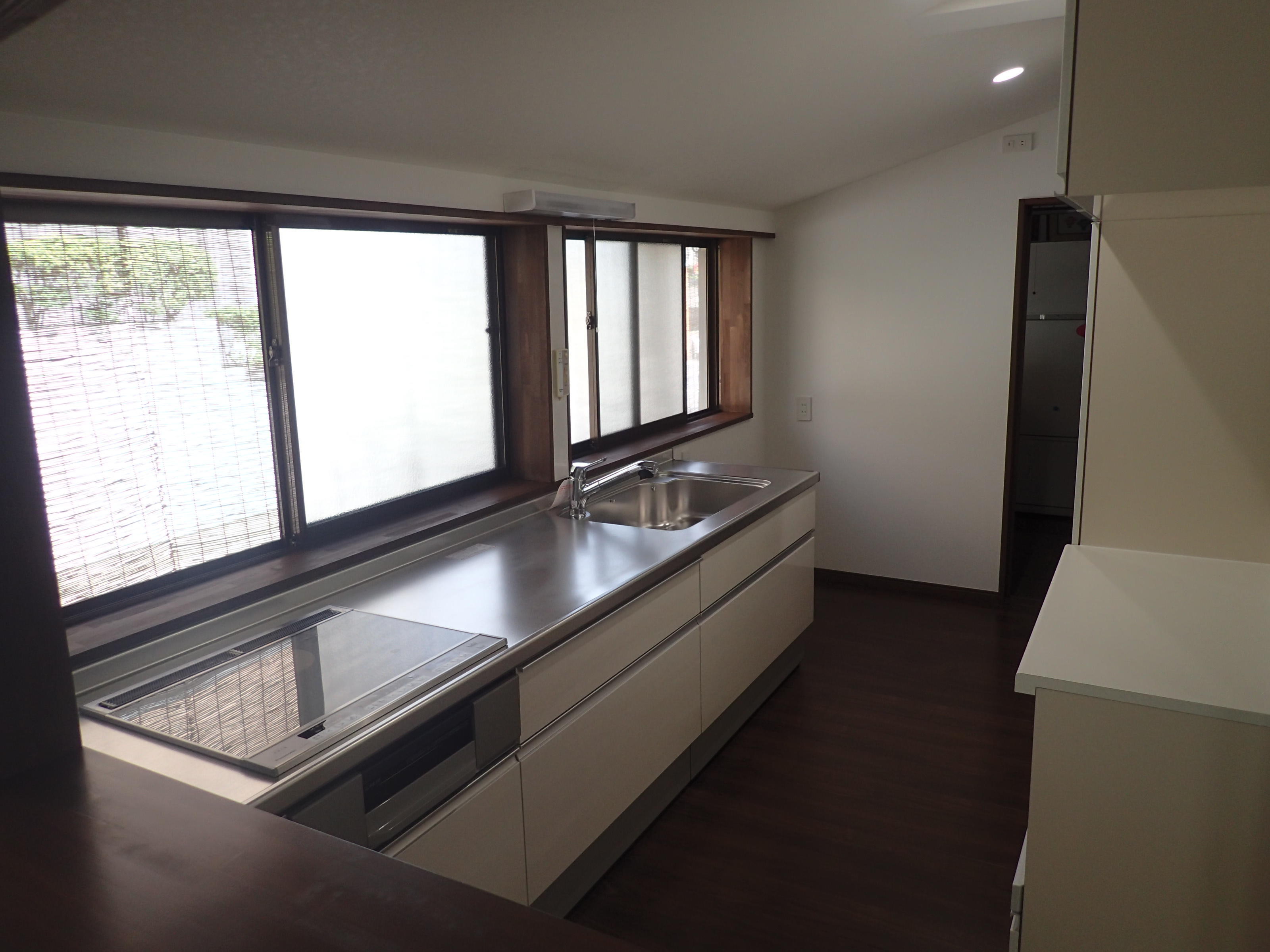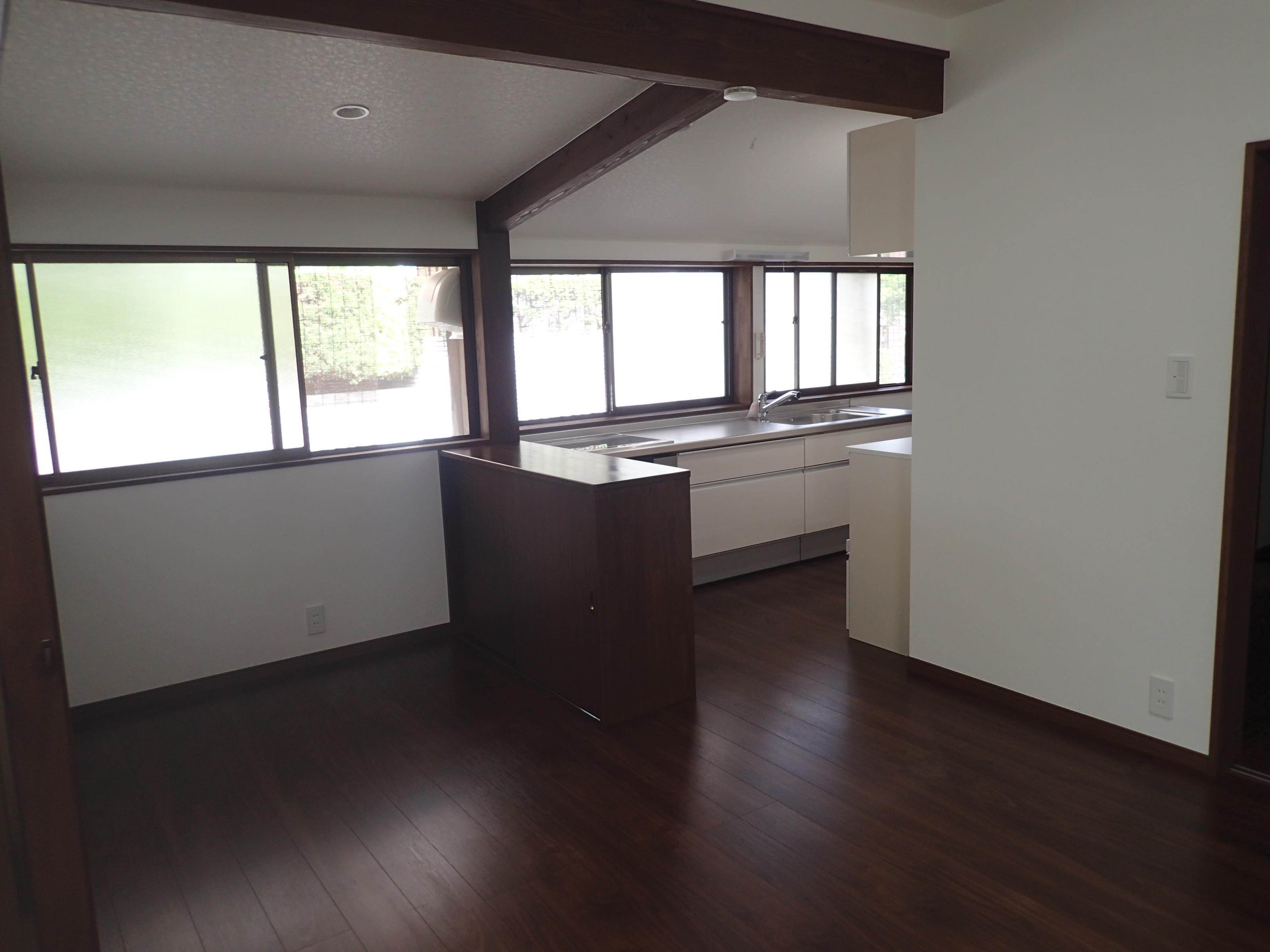 老朽化が進み、暗くて狭かった台所スペースを居間とつなげることで、広くて明るいLDKに仕上げました。さらに車椅子でも対応できる間取りに変更して、安心して生活できる水廻りとなりました。お客様も「動線がスムーズになり、とても使いやすいキッチンスペースとなりました」と大変お喜びでした。