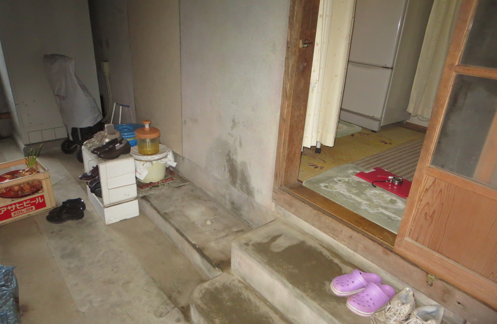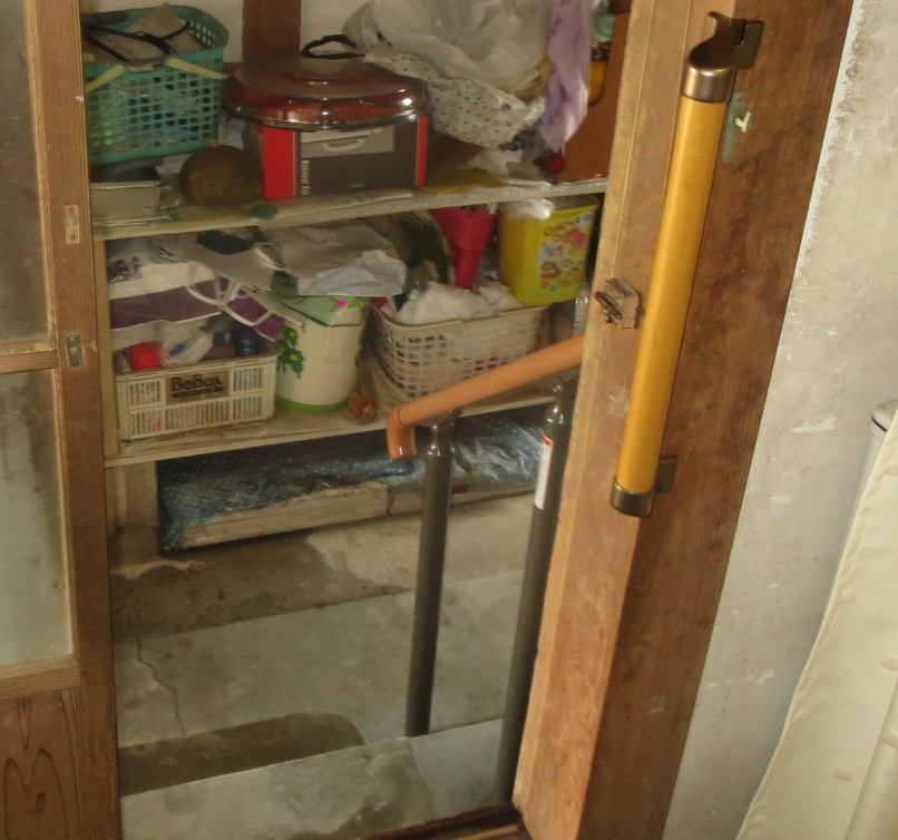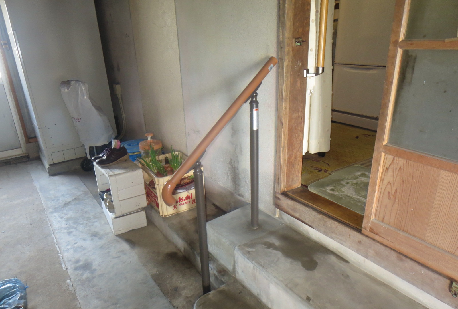 入口に縦付手摺 階段にコンクリートを延長し、手摺取付
