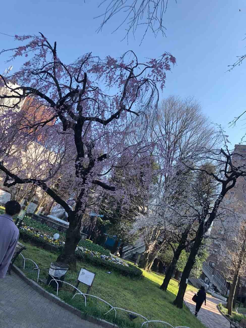 区役所の前の公園の枝垂れ桜がすでに咲いていました。