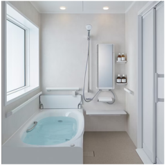 収納も兼ねており、浴槽に入りやすくなるエスコートバーが特徴です。