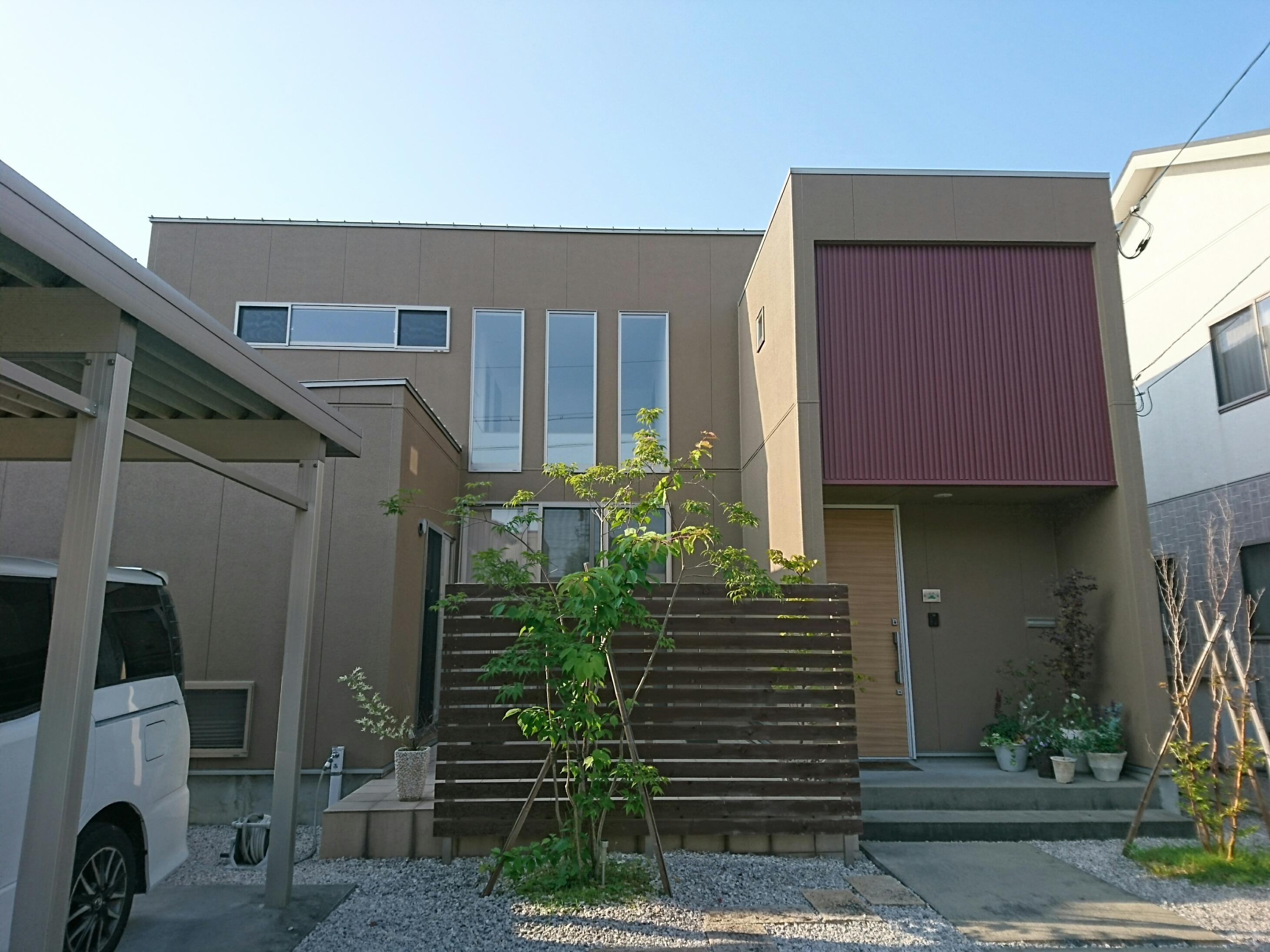 外壁の汚れや劣化、コーキングの劣化等がみられ、劣化が進む前の外壁リフォームをご希望。日当たりの良い南面は特にコーキングの劣化が見られました。外壁の色も、新築当時から年数が経つと好みも変わり、今回は少し落ち着いた色に仕上げました。併せて、足場を組んだタイミングで出来る補修工事等も行いました。