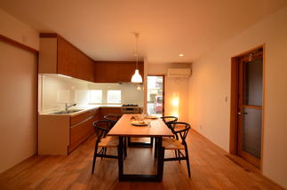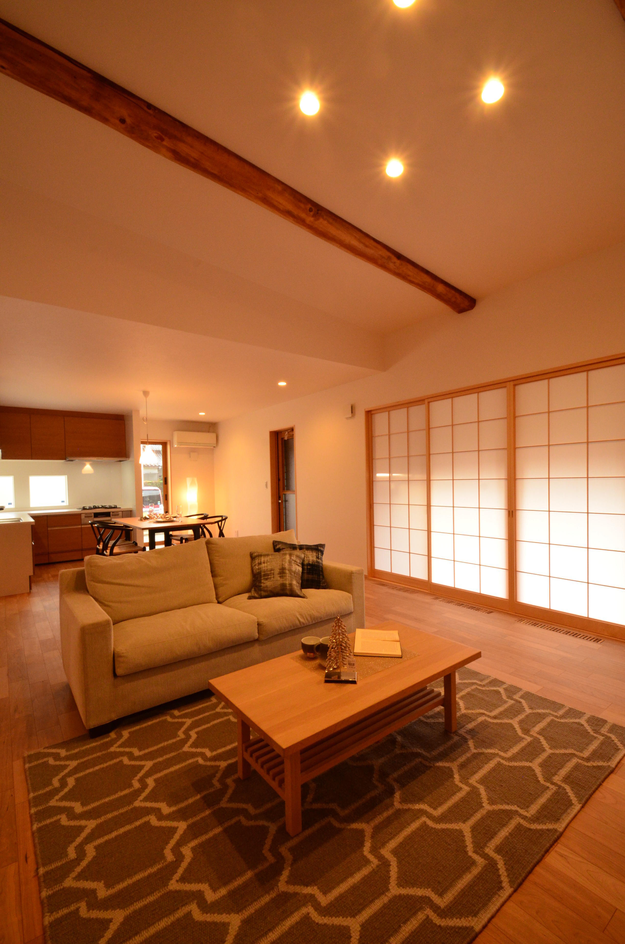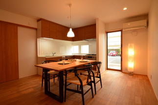 時代と共に変化するご家族様のライフスタイル合わせた、建物全体のリフォーム。暮らしやすい間取りに変更し、暮らしに合わせた設備へ変更。既存の窓から眺められるお庭を活かし、落ち着いたLDKになりました。元々あった梁を見せ、高い天井にしたリビングや、奥様あこがれのL型キッチンも採用。ご家族皆様がくつろげる広いLDKになりました。
