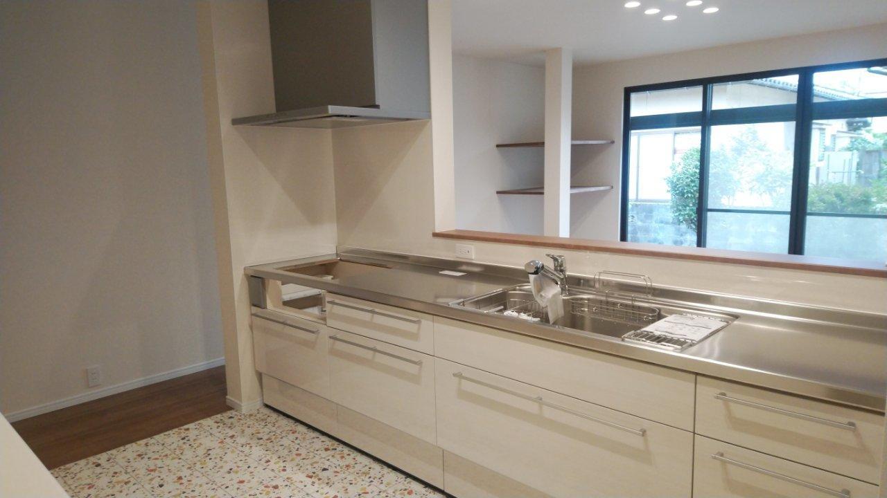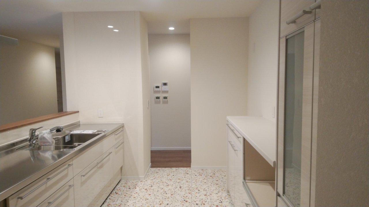 うまく活用されていなかった広い和室と縁側に比べ、毎日長い時間を過ごすダイニングキッチンの方が狭く、更に水廻り動線が複雑なお住まいでした。 和室と縁側のスペースをLDKに、ダイニングキッチンスペースを寝室と収納スペースに、洗面脱衣室はすっきり広い空間にしました。床暖房も採用し、わんちゃん含めご家族皆様が快適にお過ごしいただけます。