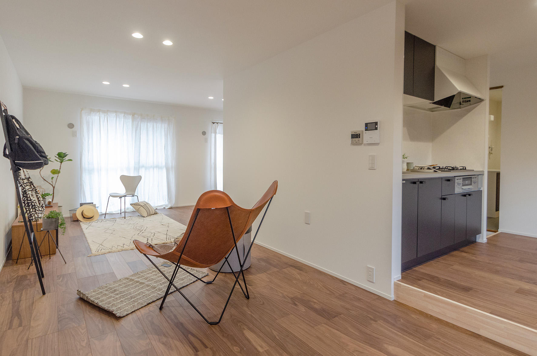 区切られた部屋の壁を無くすことで、開放的なスペースを作り出しました。 また、外からの光入りやすく部屋全体が明るくなっております。 内装をナチュラルテイストにすることによって、あたたかみが感じられます。