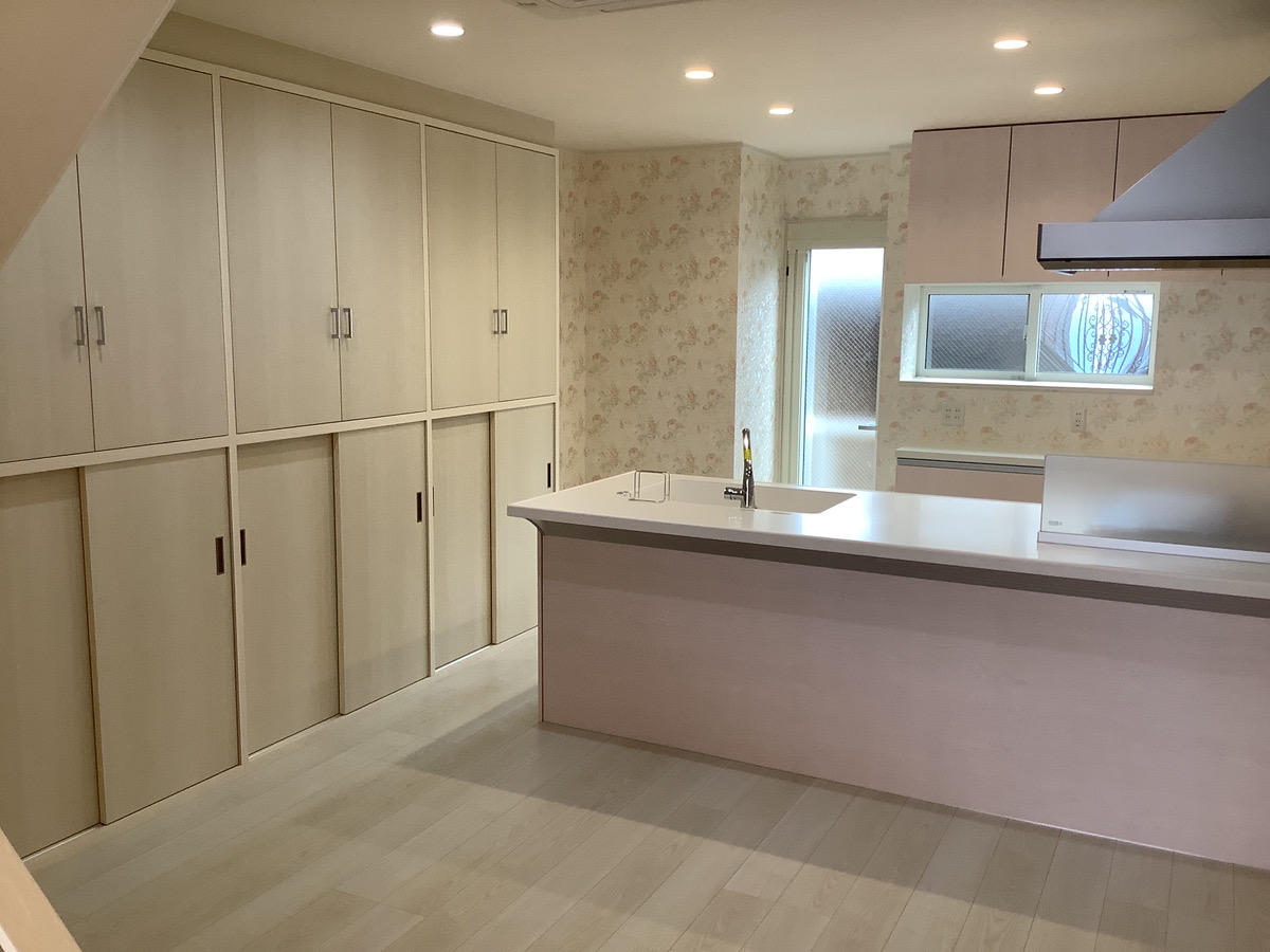 今回、店舗を事務所として改装される際、お好みのインテリアにしたいということで、カラーや質感、奥様がイメージされるエレガントインテリアの表現を重視し、様々なご提案をさせていただきました。