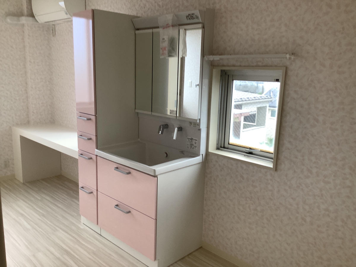 特に、ホワイト×ピンクインテリアのバランス、シャンデリアからの光のデザインとマテリアル、既存の建物を活かしたプランニングにこだわりました。