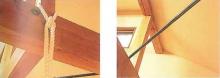 ★梁に取り付けたブランコロープ(左)と鉄棒(右)。どちらもお子様に大人気。