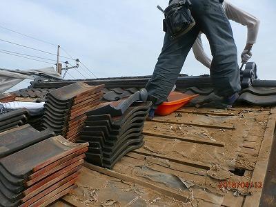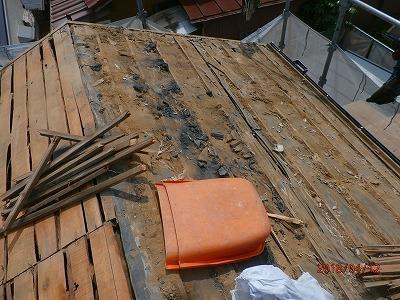 瓦の下地をみたらボロボロに。急遽、屋根の葺替え工事へ。耐震性の強化も兼ねて金属性の軽い屋根へ