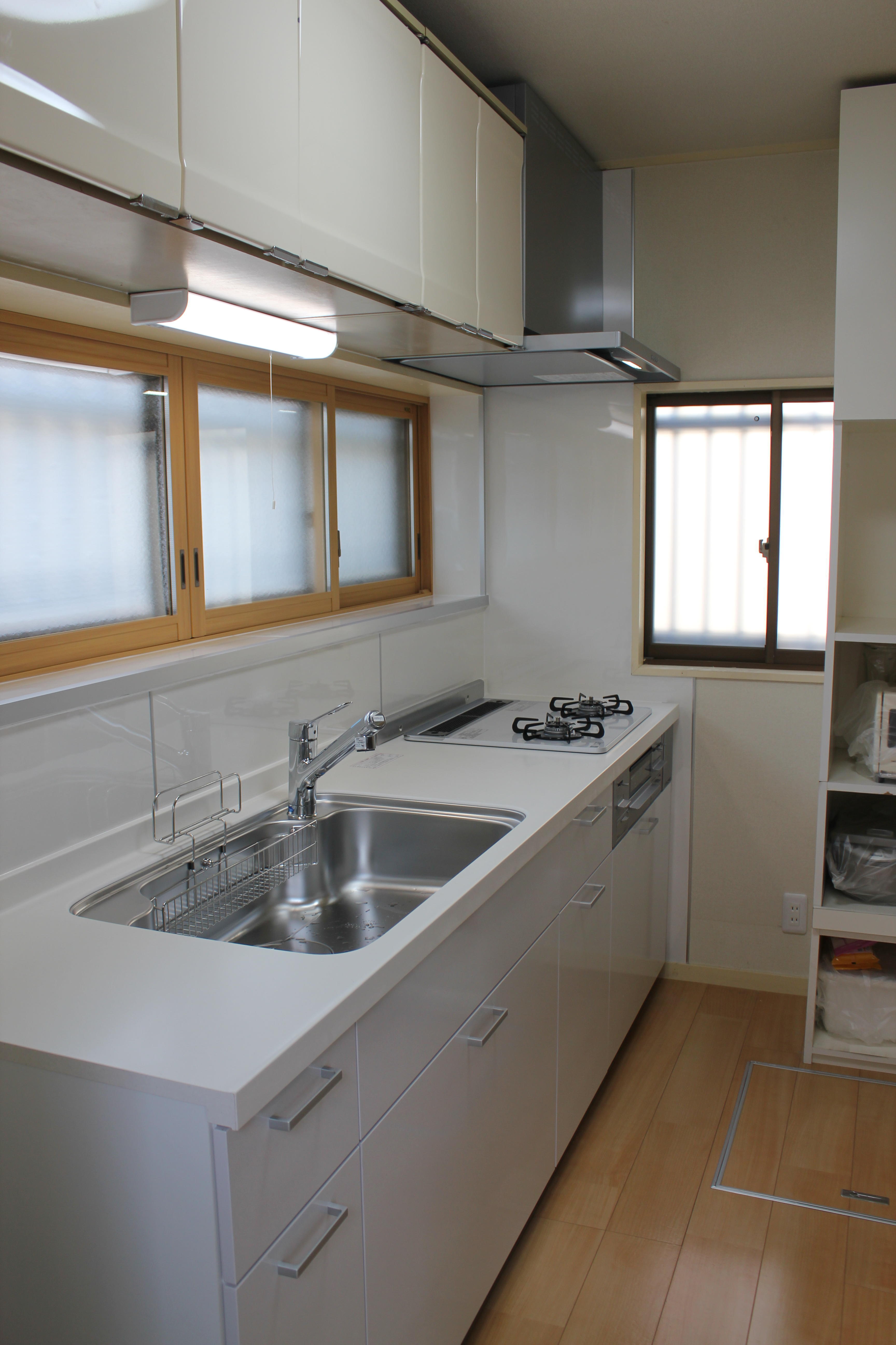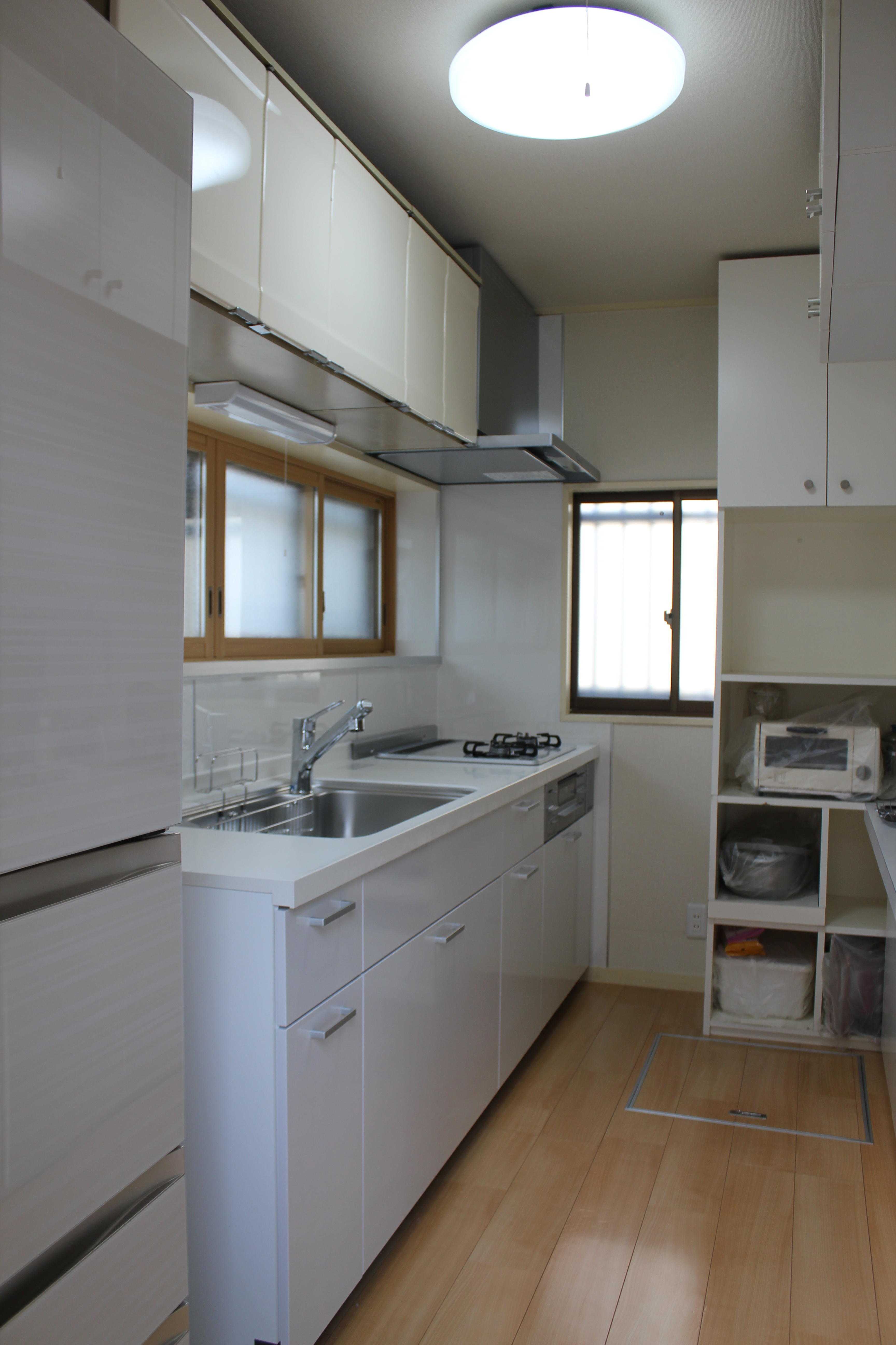 白を基調としたキッチンの採用でお部屋全体も明るくなり、