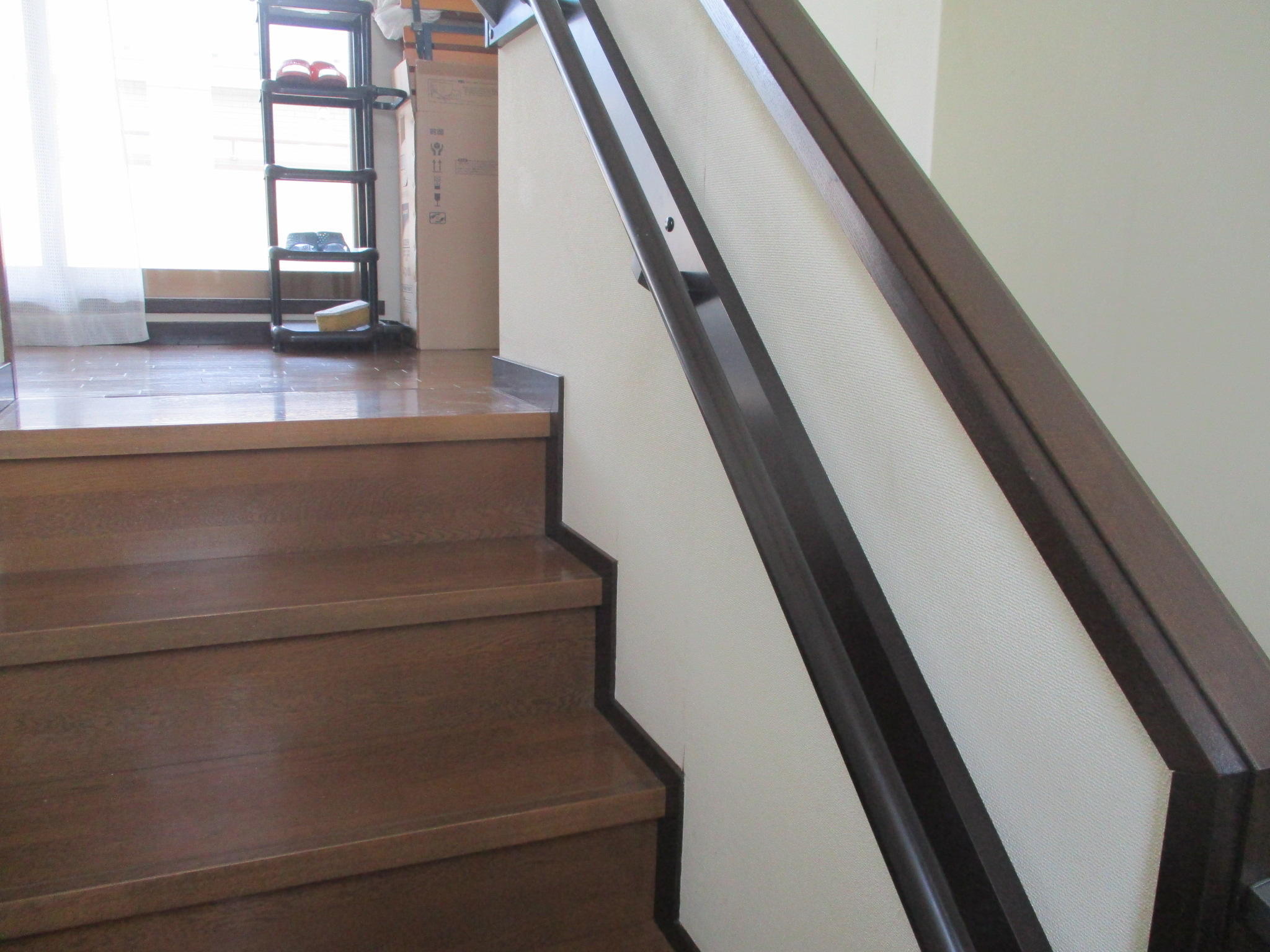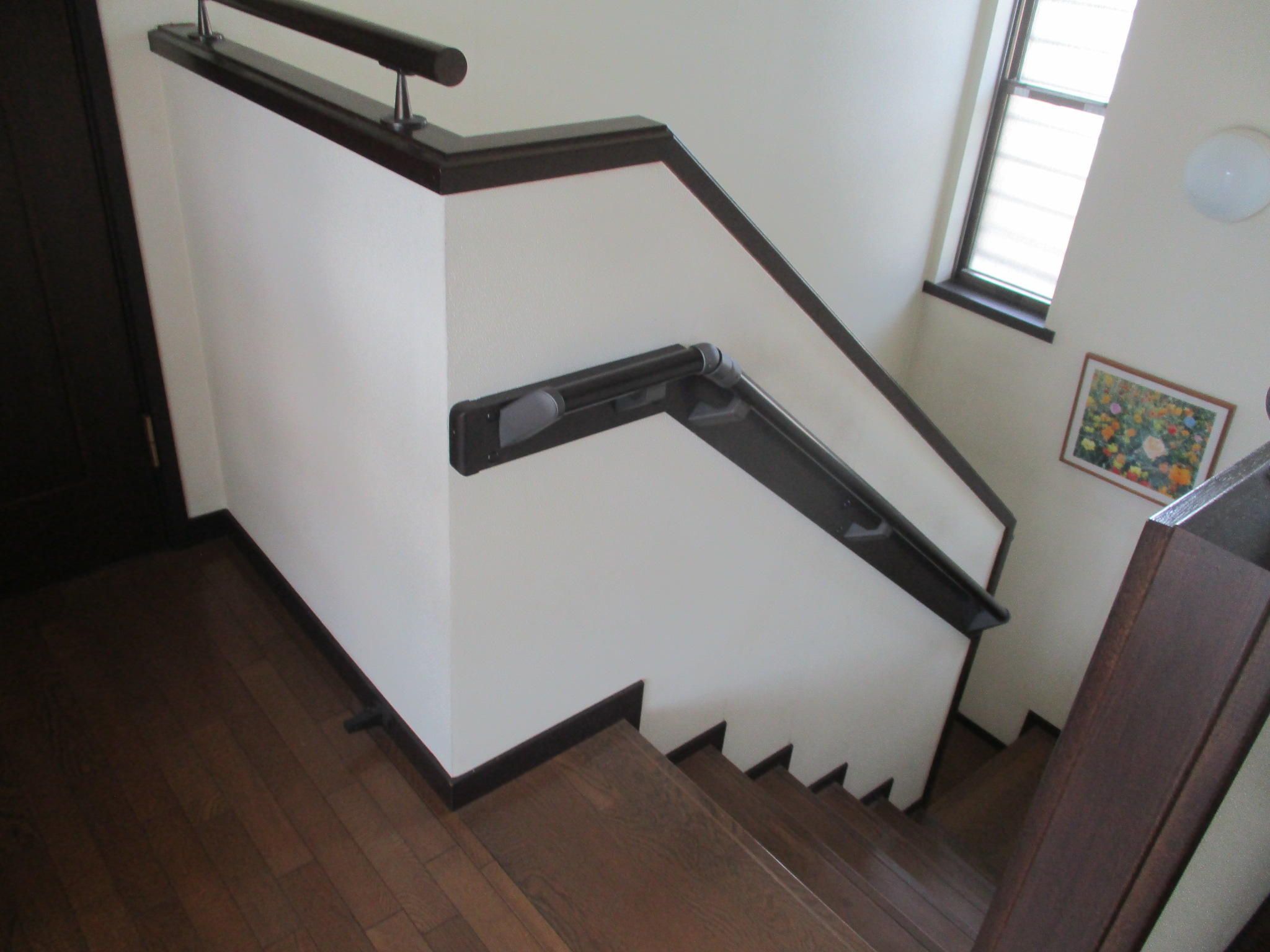 玄関先と室内の階段にそれぞれ手摺を設置させていただきました。