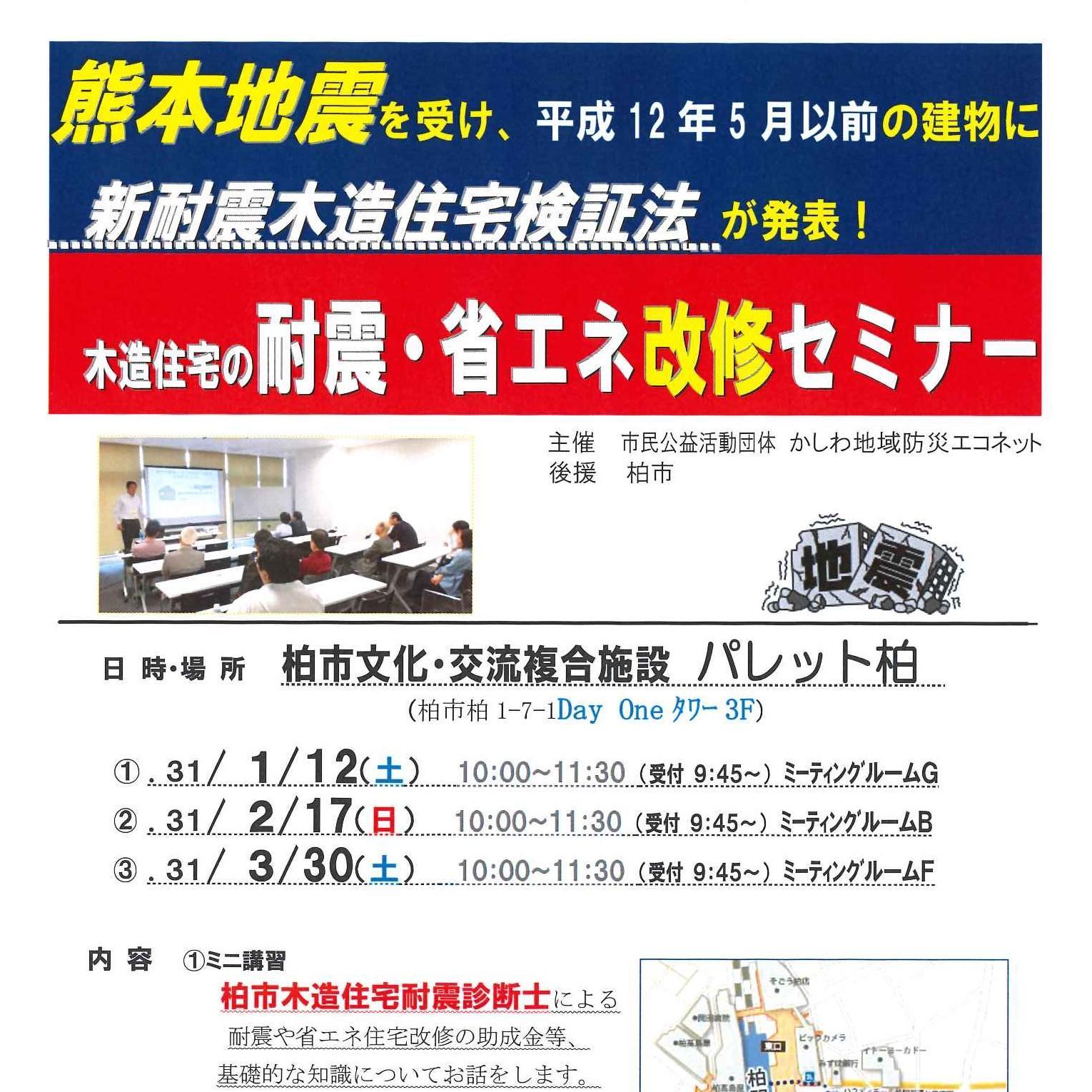 木造住宅の耐震・省エネ改修セミナー H31年3月30日(土)