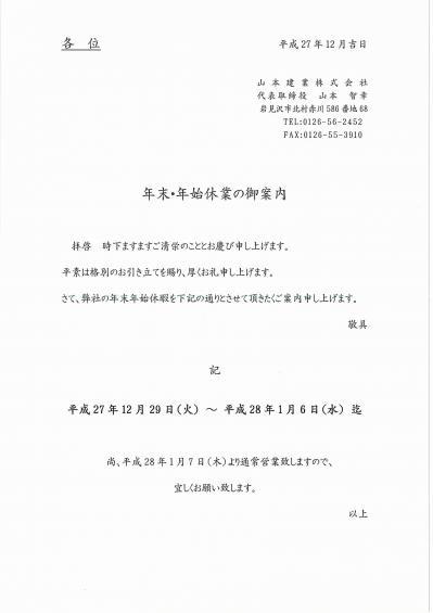 年末年始のご案内