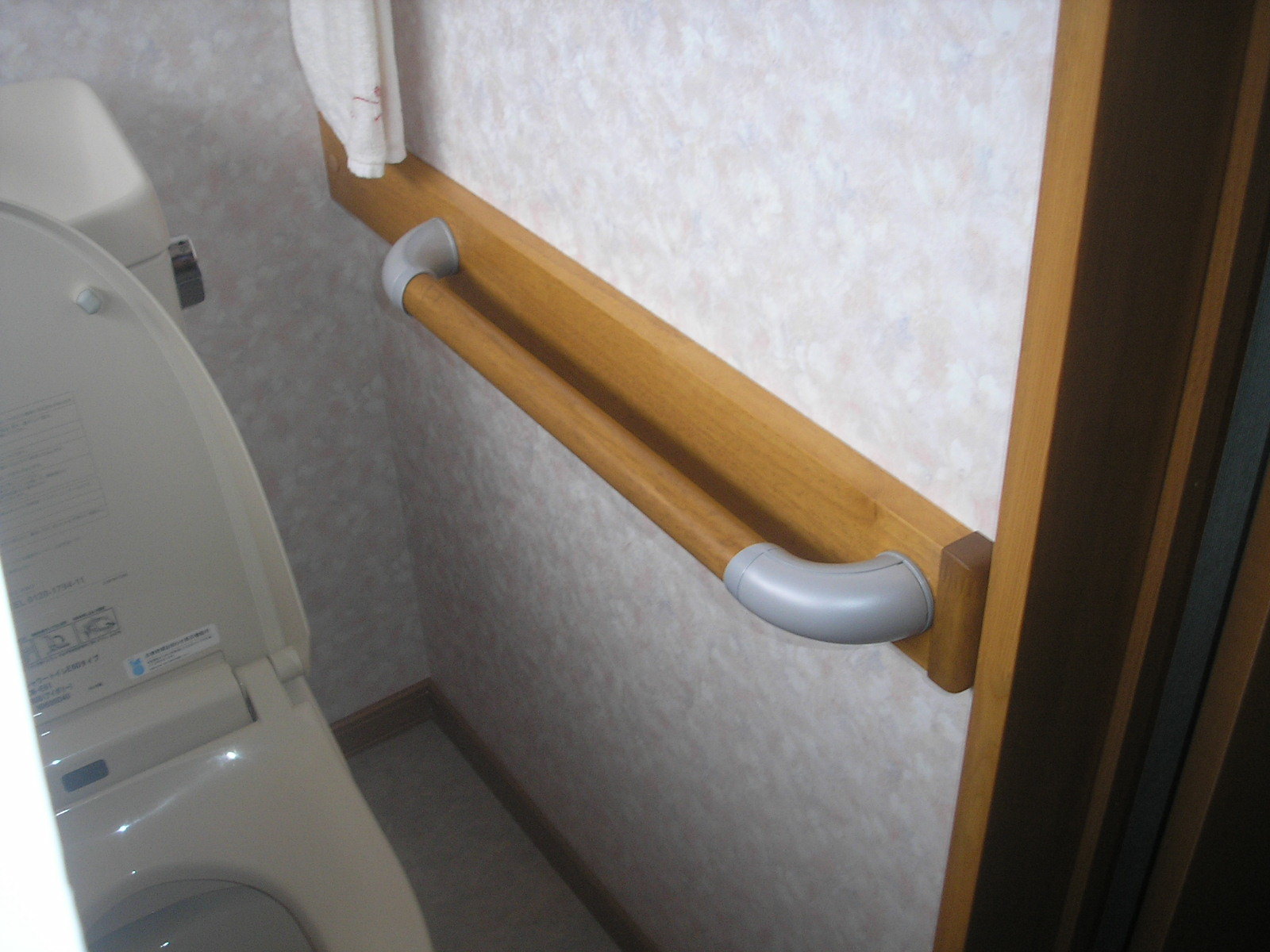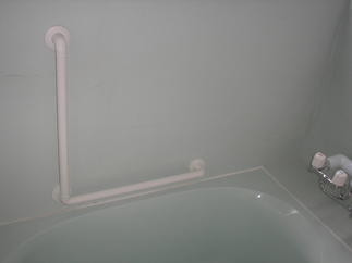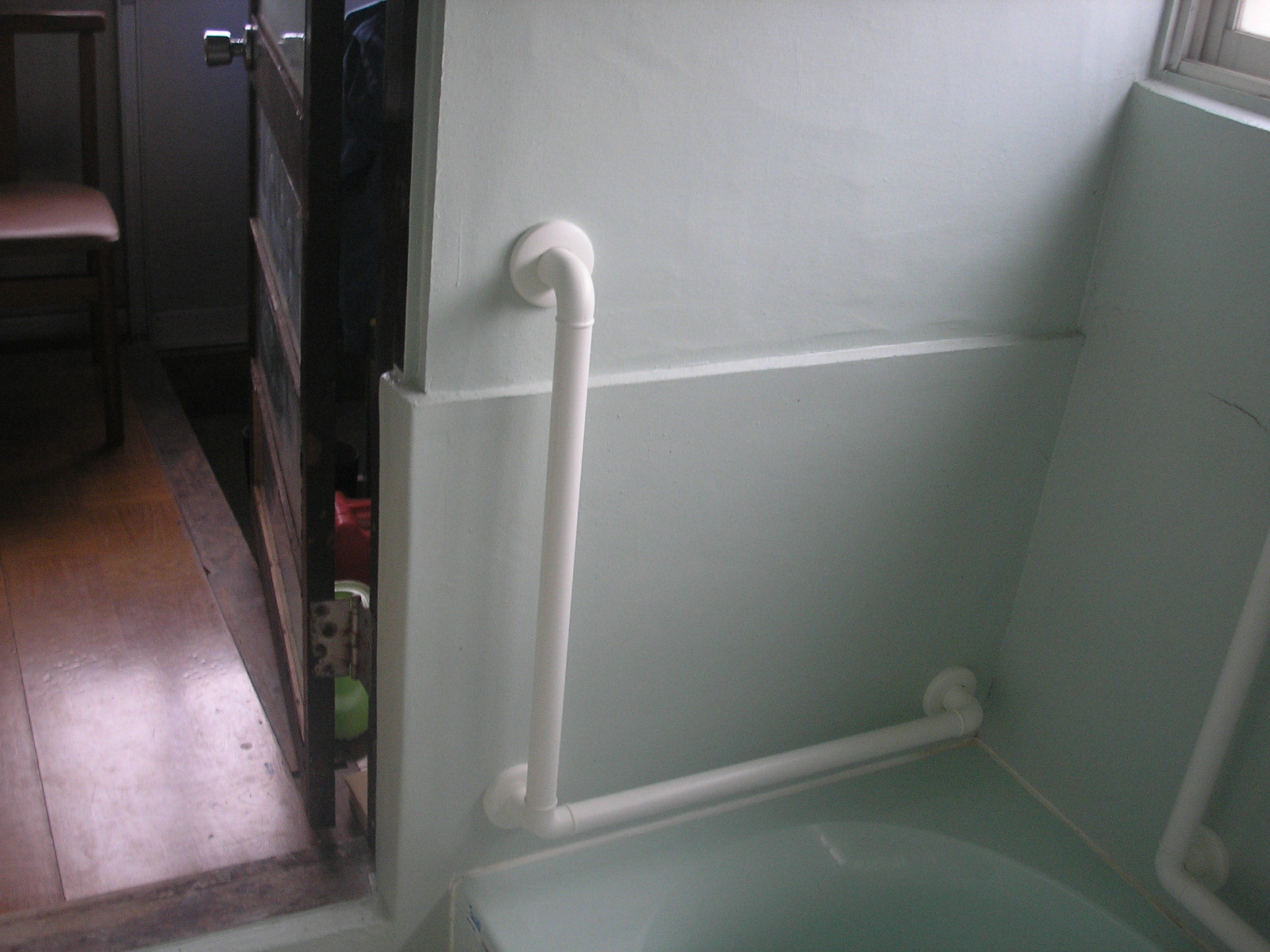 手摺設置工事 浴室3ヶ所設置 樹脂製手摺L型600×600