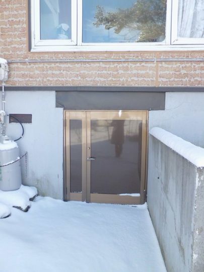 ドア取付工事 シャッター撤去、親子ドア取付