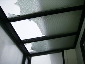 雪害復旧工事 風除室ガラス修繕、屋根、外壁一部修繕 など