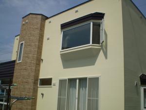 外部改修工事 全面 屋根塗装、外壁張替工事。外部メンテナンス完了。色合いも素敵に仕上がりました。