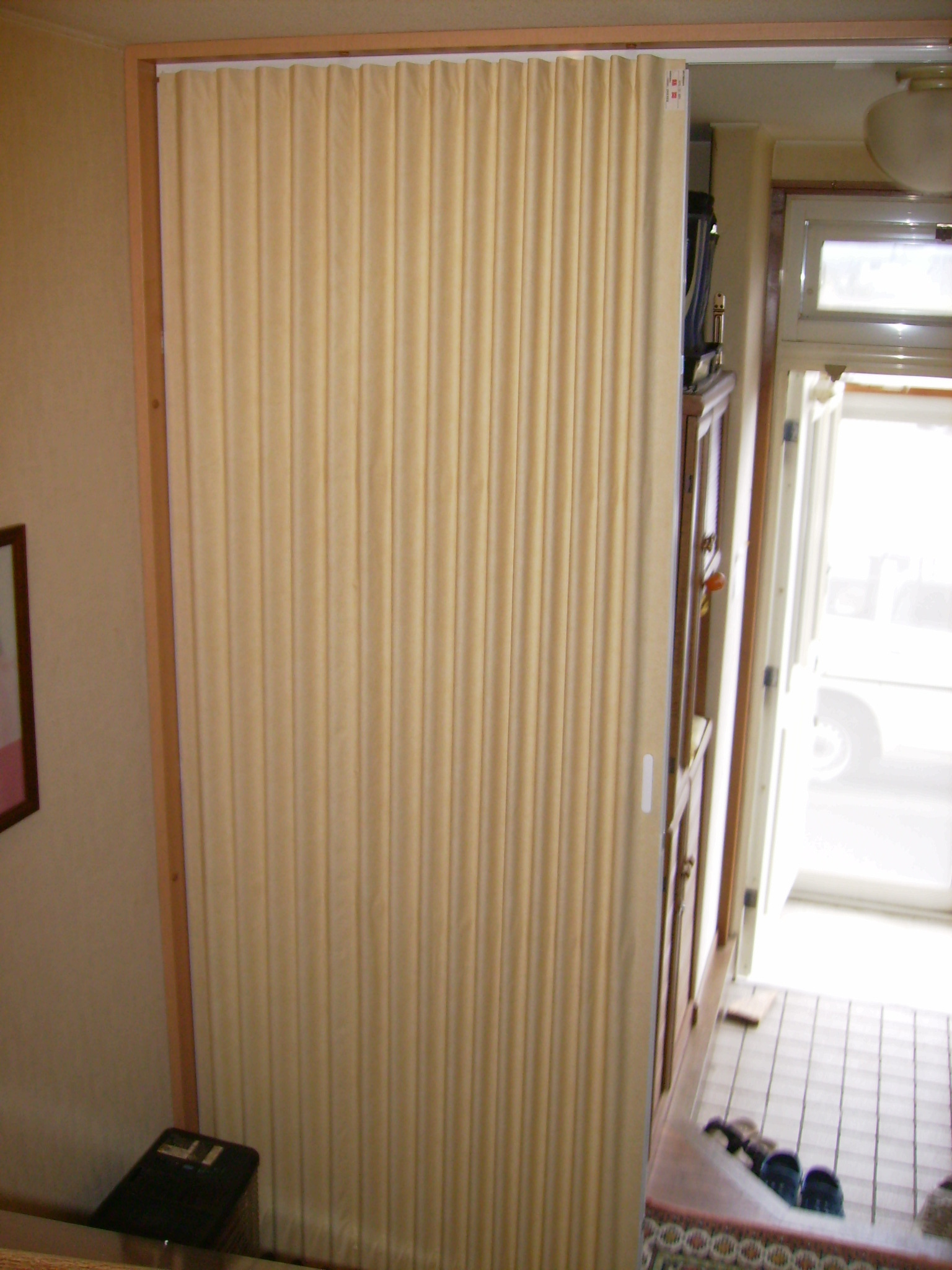 玄関と玄関ホールとの間にアコーディオンカーテン設置