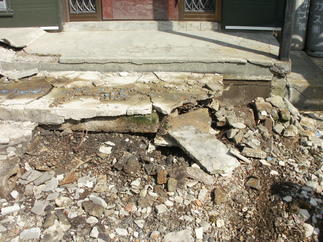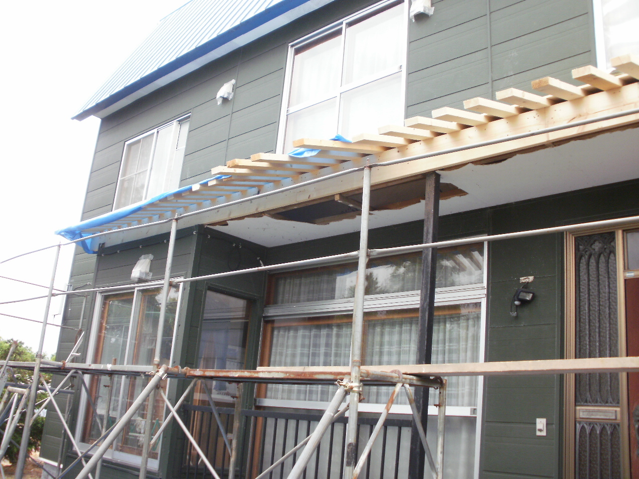 雪害により破損屋根修理、玄関前階段コンクリート打ち直し