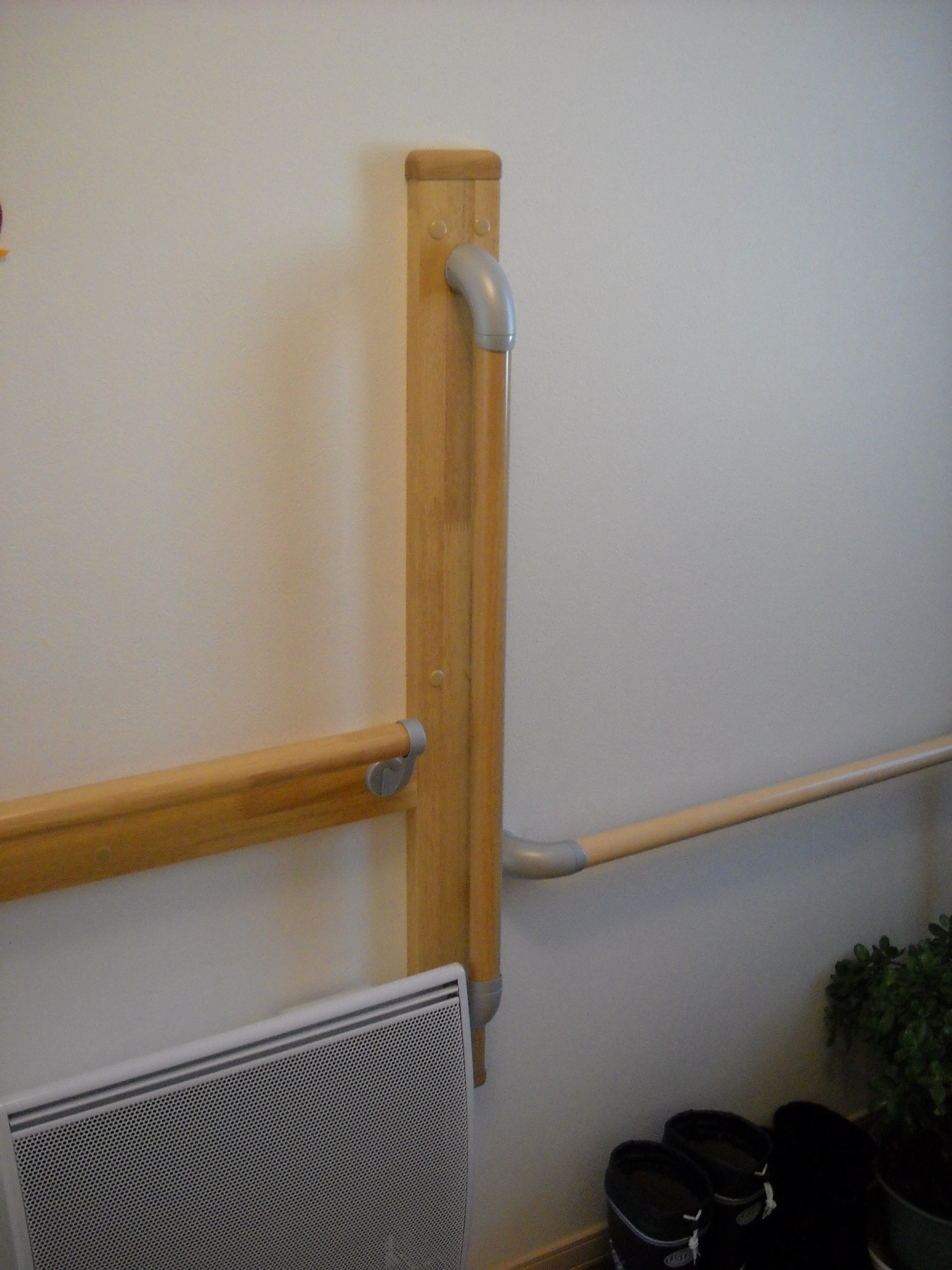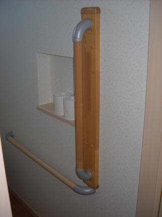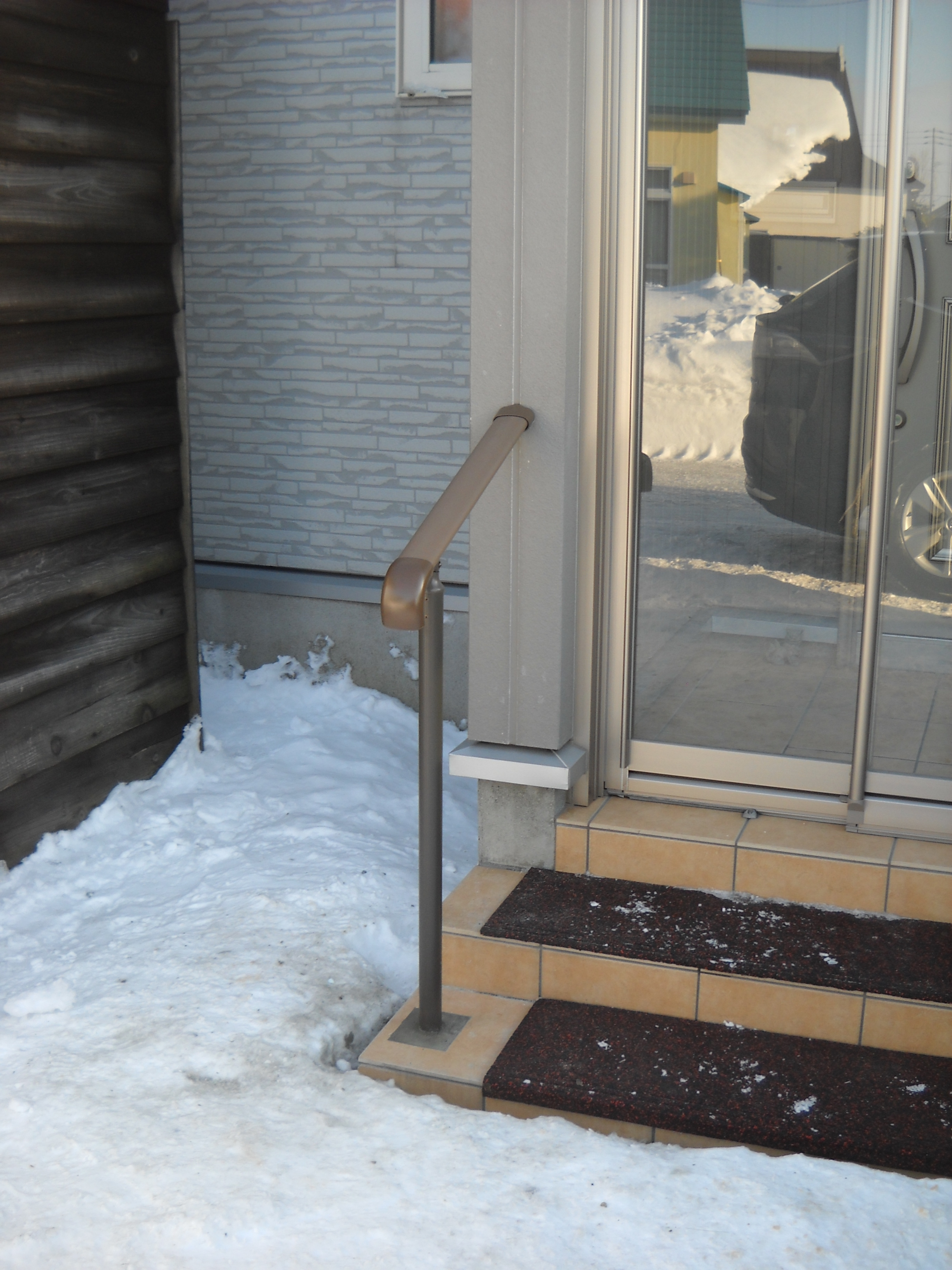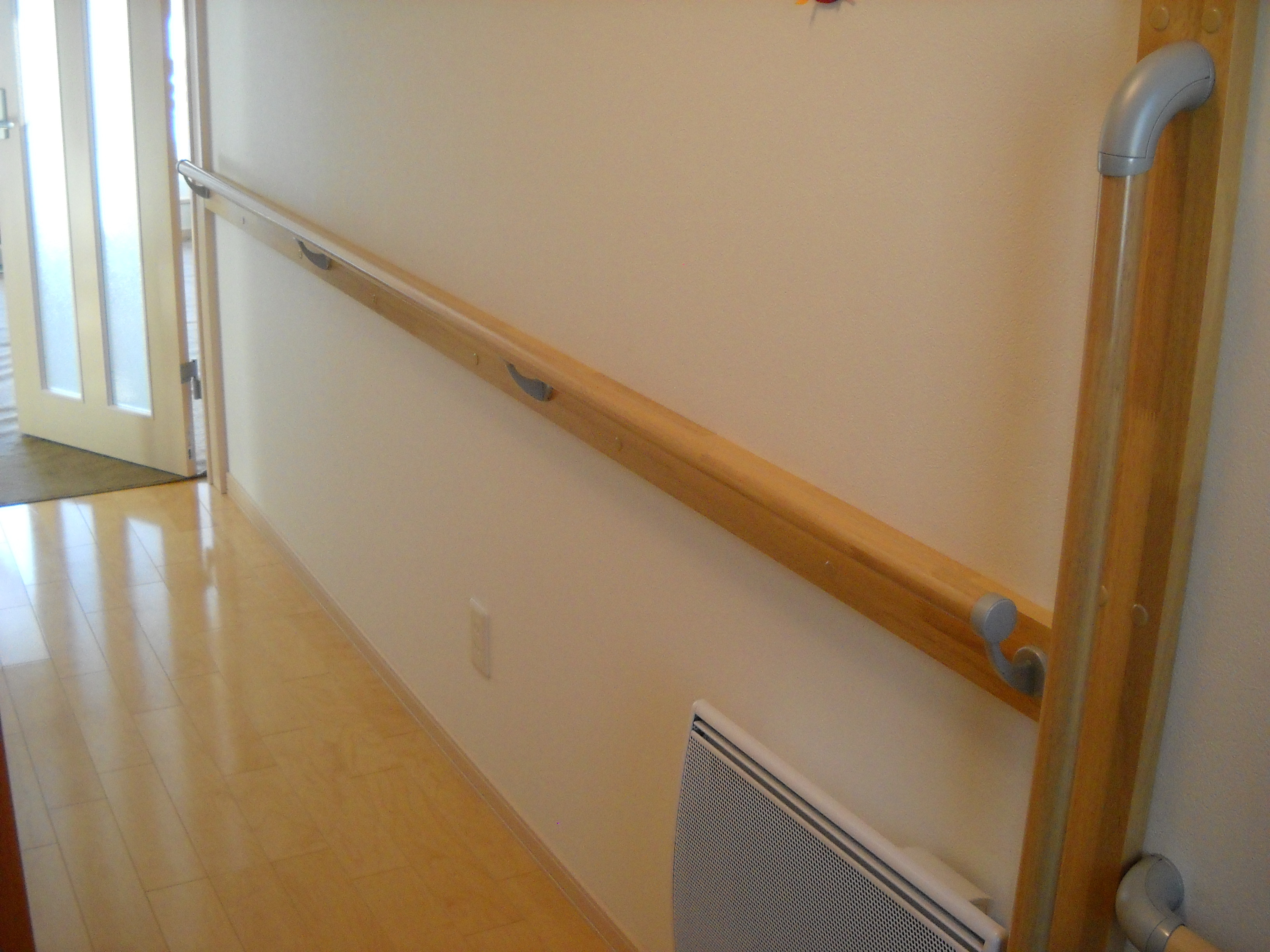 介護保険を活用し、1割個人負担で市からの給付を受け住宅の手摺設置工事を行いました。これで安心して快適に生活することができますね。(介護保険申請手続き等も山本建業にお任せください!)