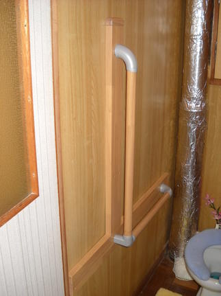 居住スペース全体に手摺を設置しました。住宅内での事故や怪我の予防に効果があります。(介護保険活用)