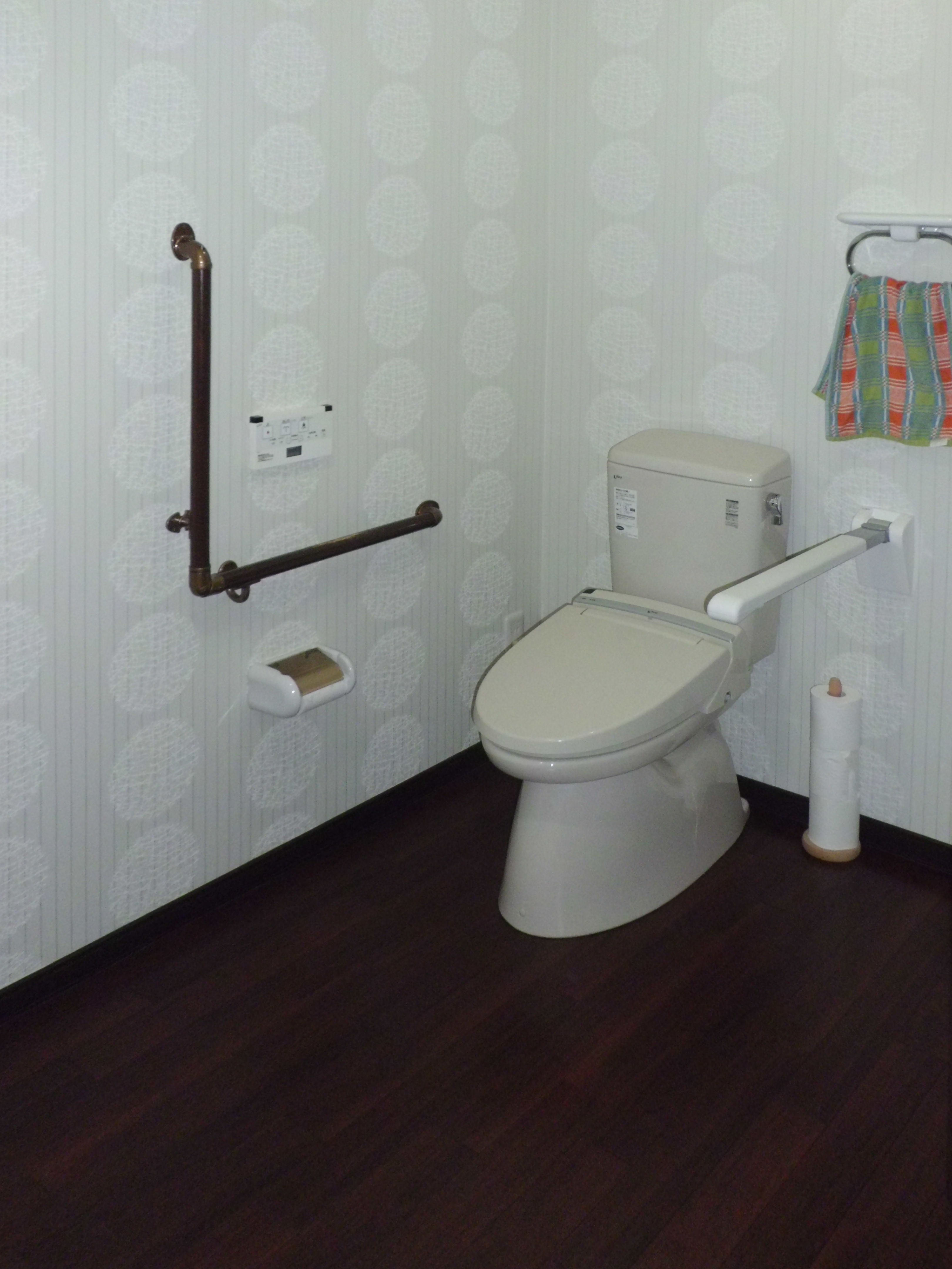 車いすでの同居者の為、トイレと隣接していた収納室を改修し、トイレを広くしました。