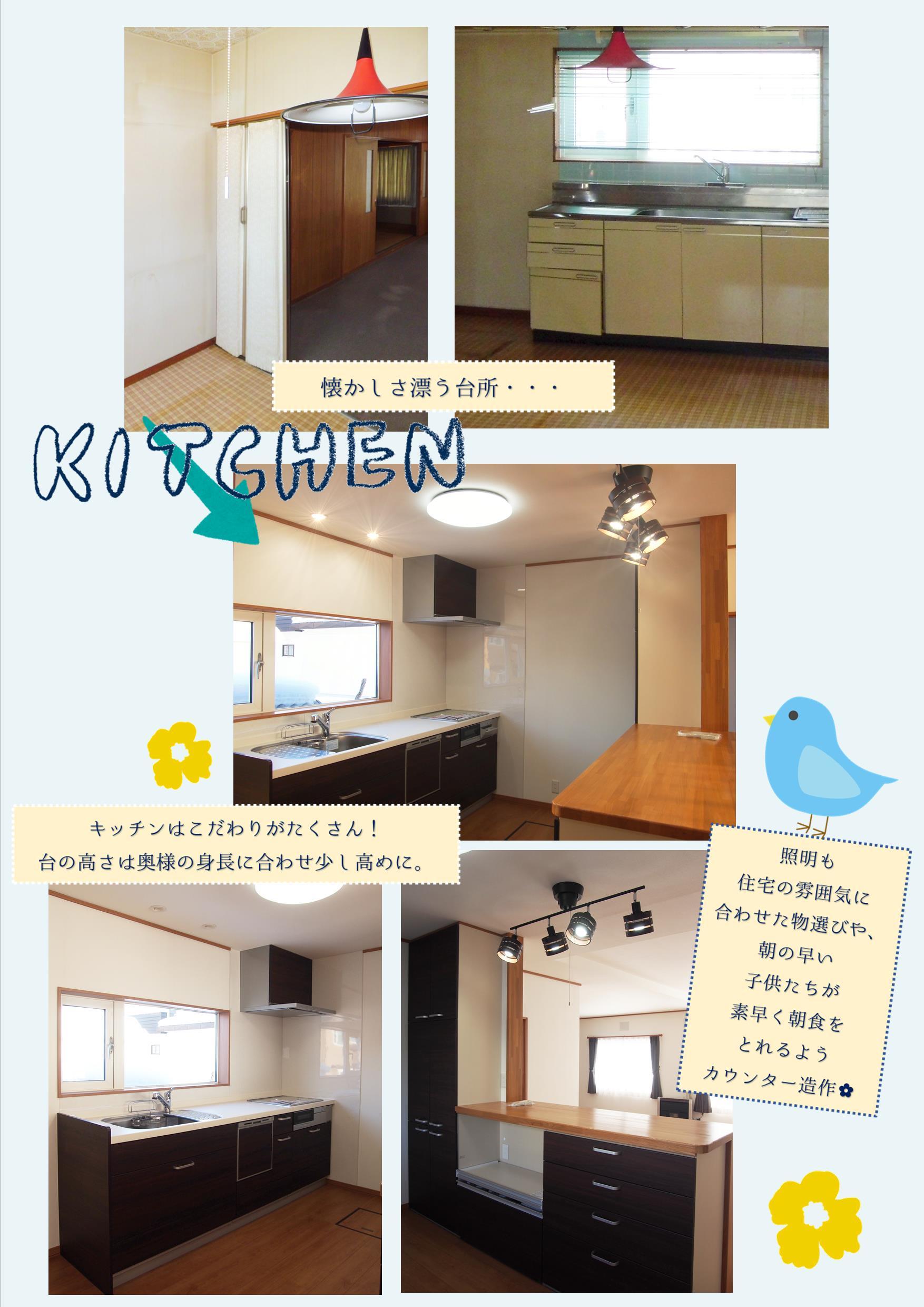 築30年の中古住宅の改修でした。可能な限りお客様の要望に近づけられるように努力したつもりです。特に、ダイニング、リビングについてはご満足頂けるのかなぁ・・・と思っています!