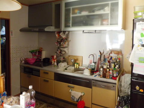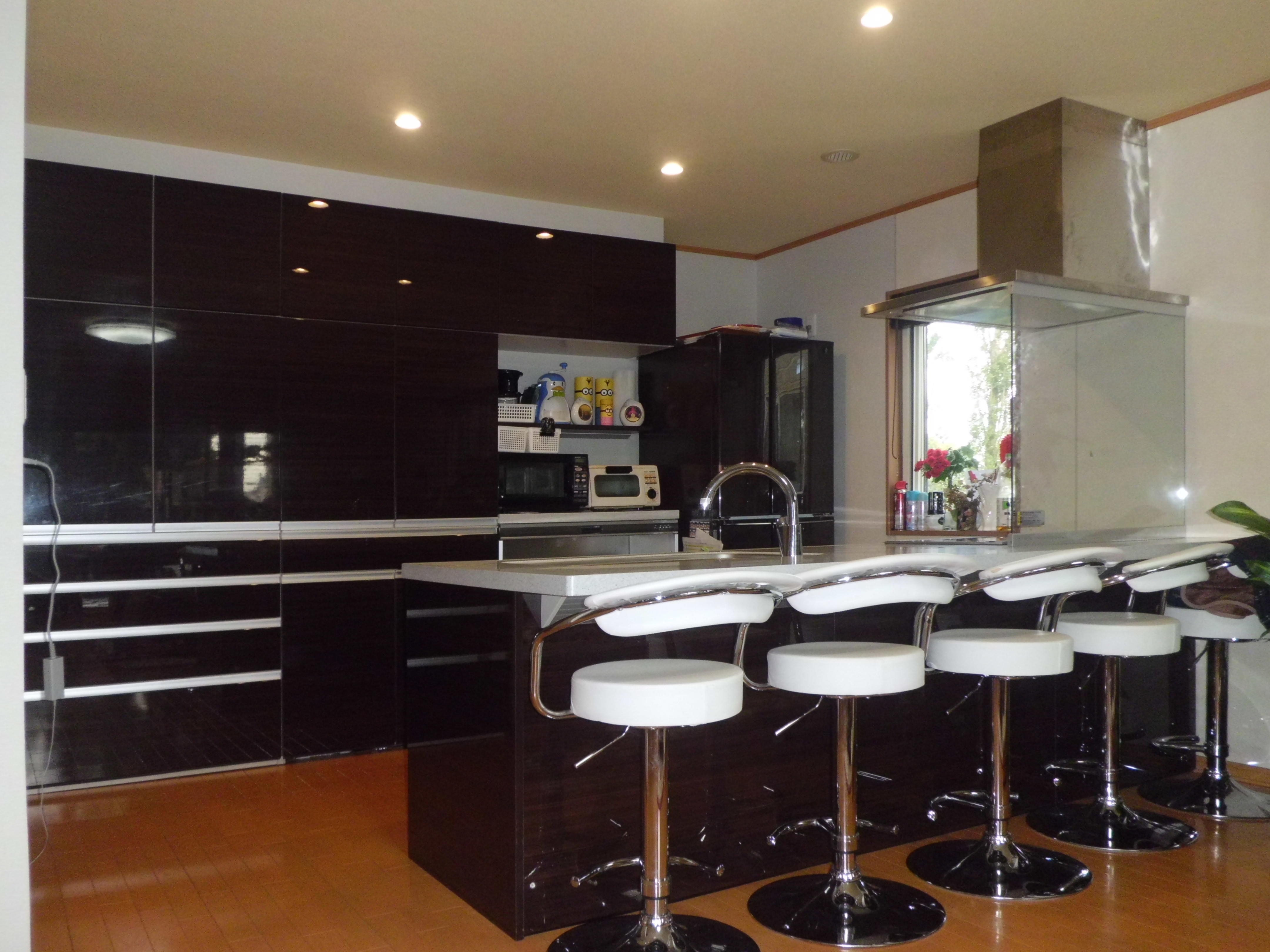 収納が少なった台所。どこかシックなbarのように仕上がりました。