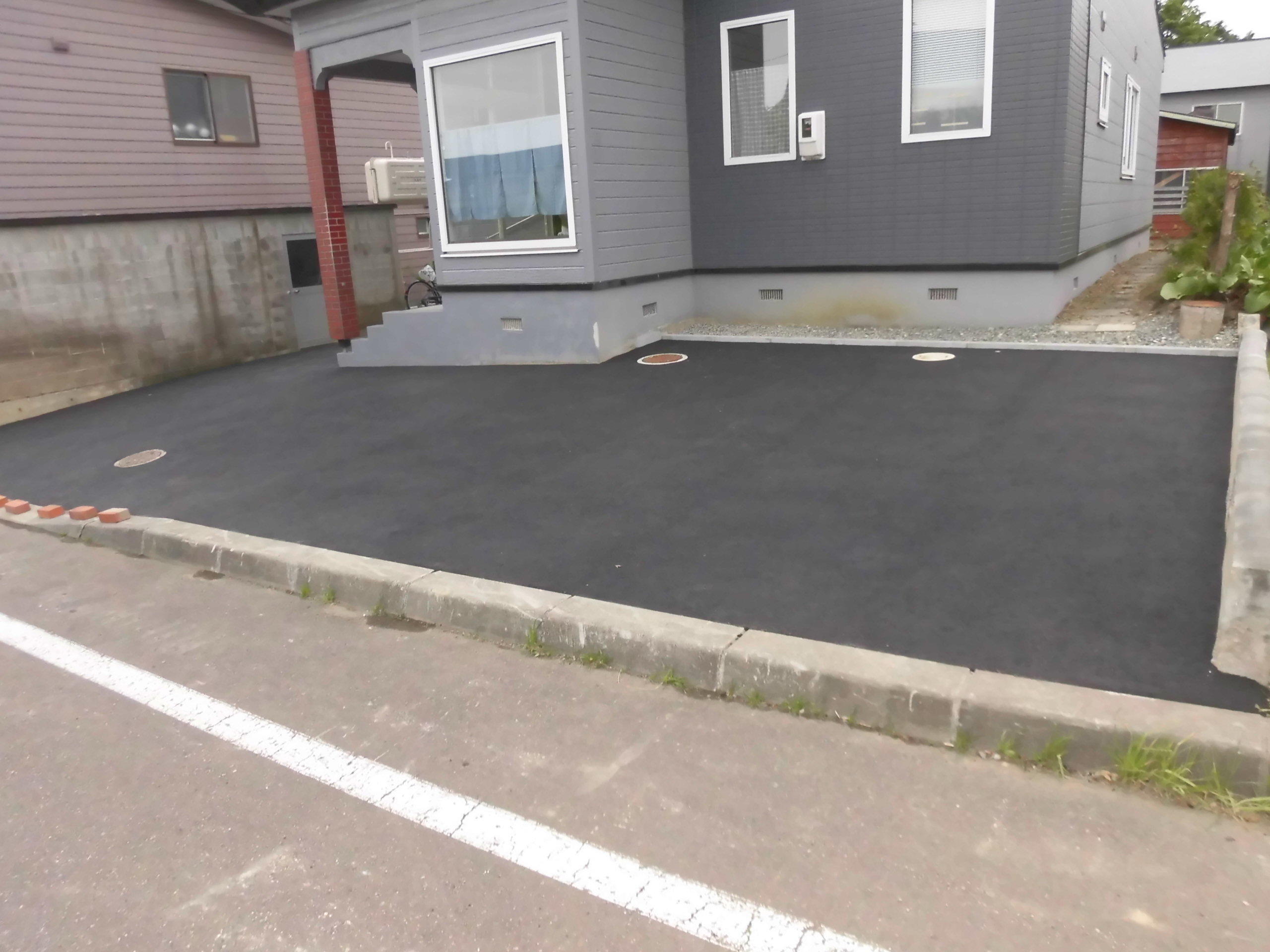 玄関入口前は、車が入るスペースがもっとほしいということで・門柱塀を解体して入りやすくスペースを取りました。裏側や側面は、造園等で木がたくさんあったので、伐採して景色がいいように施工しました。