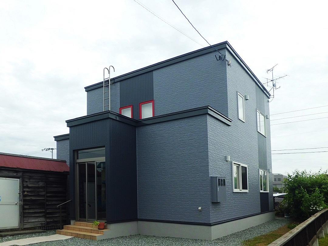 外壁、屋根塗装工事。もともと綺麗ではありましたが、塗り替えに!少しトーンを落としたダーク色に変身。