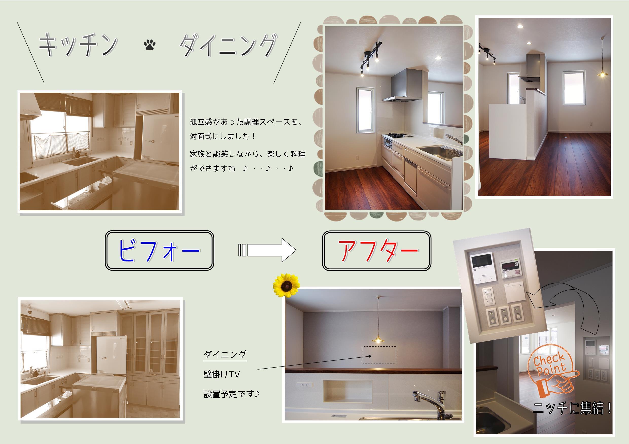 工期も新築同様な期間になりましたが頑張りました。できるだけお施主様の要望通りになるよう努めましたが(^_^;)・・・冬はどこの空間にいても床暖なので暖かく過ごせると思います!
