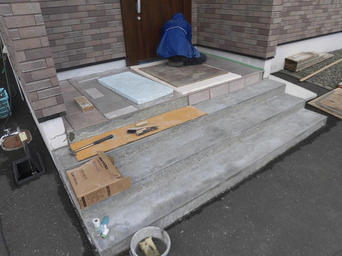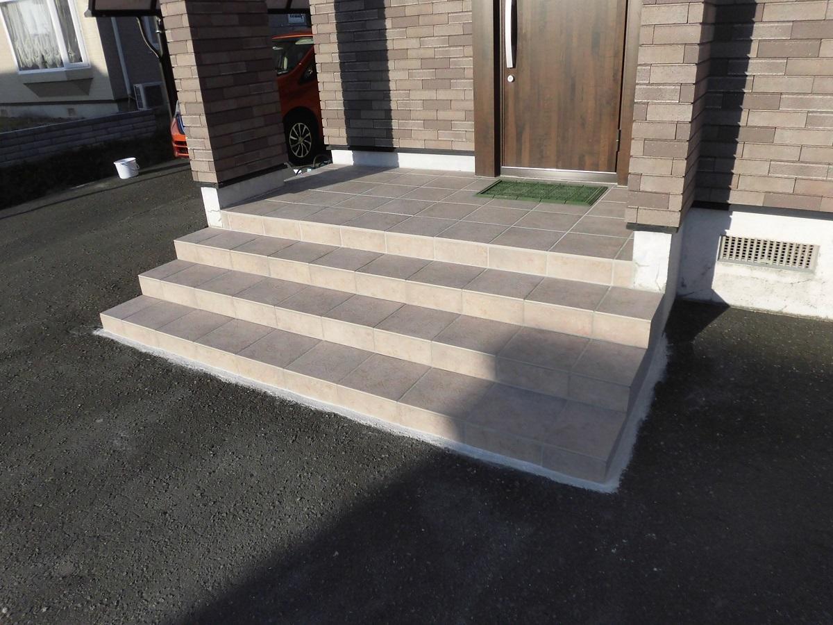 今回のタイル工事は、タイル下の既存基礎土間が余り変動狂いがなかったので、 下地処理や・タイル張がスムーズ現場が進みとても良かった。 今回の300角タイルにしたことで、これから先頑丈な玄関タイルであって欲しいですね(^^♪
