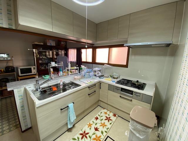 既存キッチンのお悩みは、レンジフードのお手入れとガスコンロの不具合でした。 最新式のキッチンは明るくて使い勝手も良く料理の幅が広がりそうです。