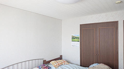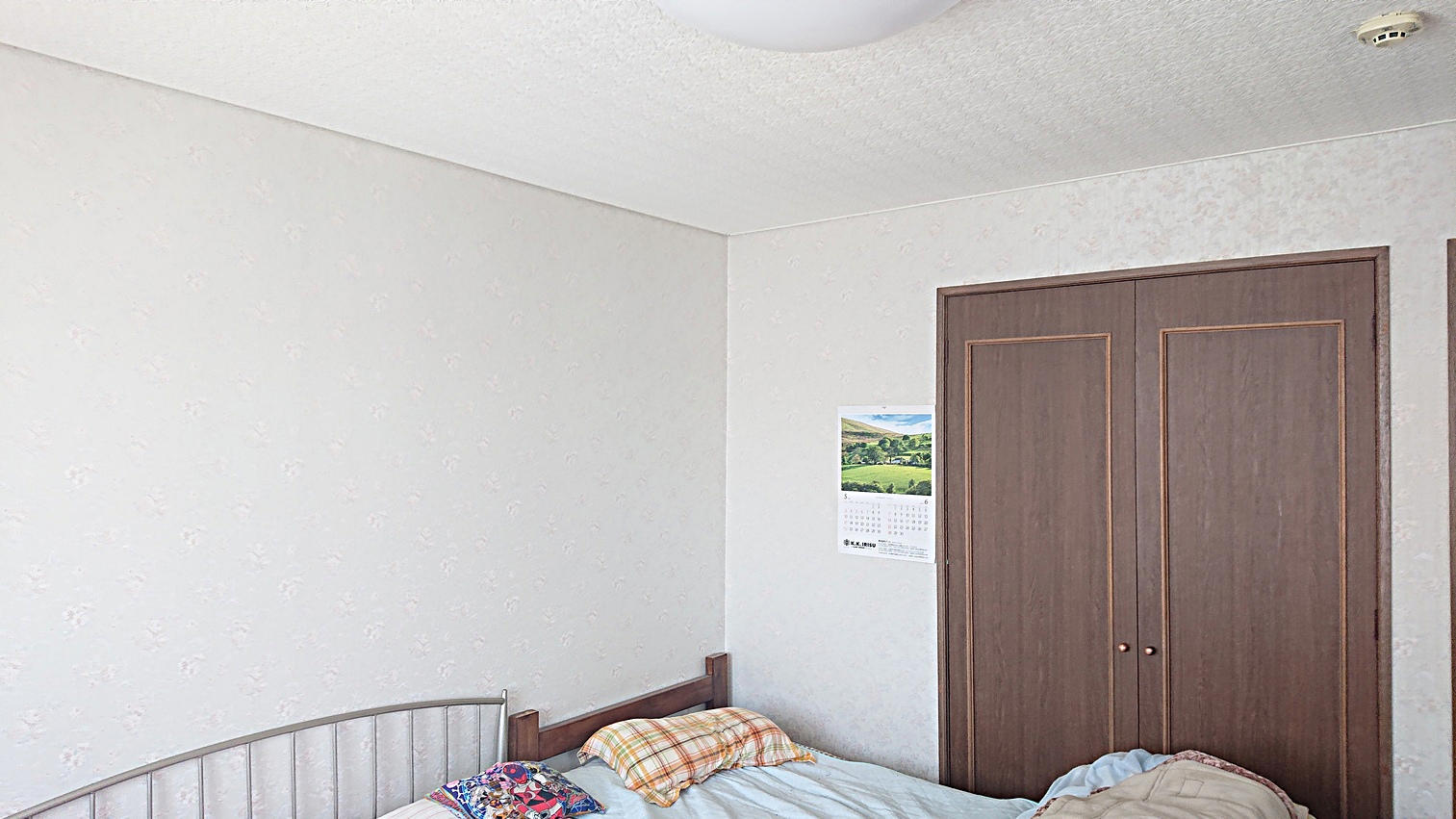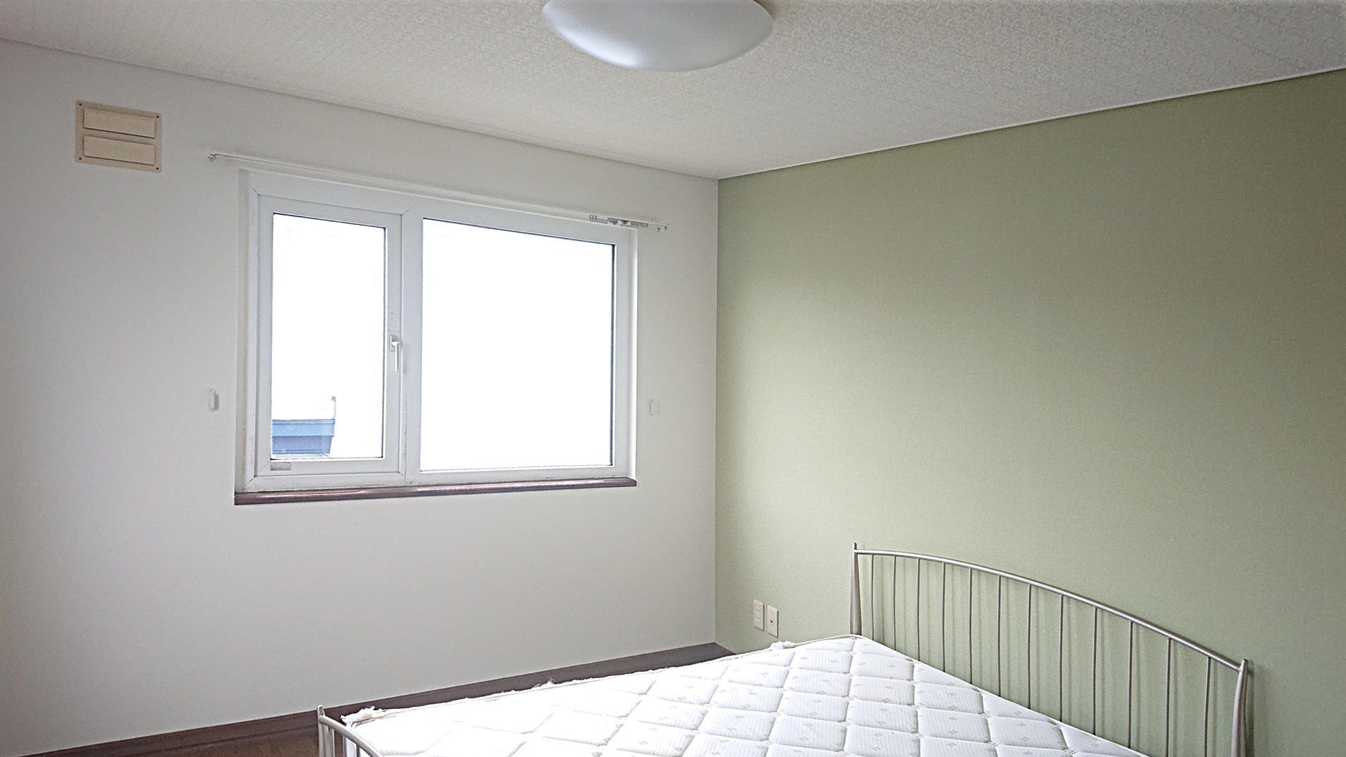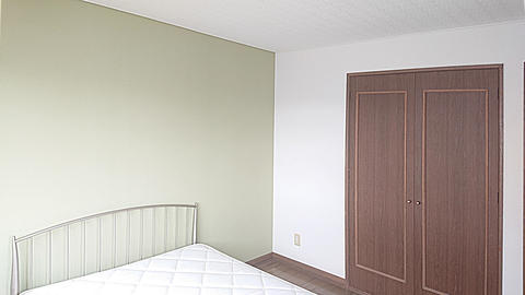汚れや傷みのある壁紙を貼替ました。 寝室なので一部分を、落ち着いた癒しの グリーンカラーに仕上げています。