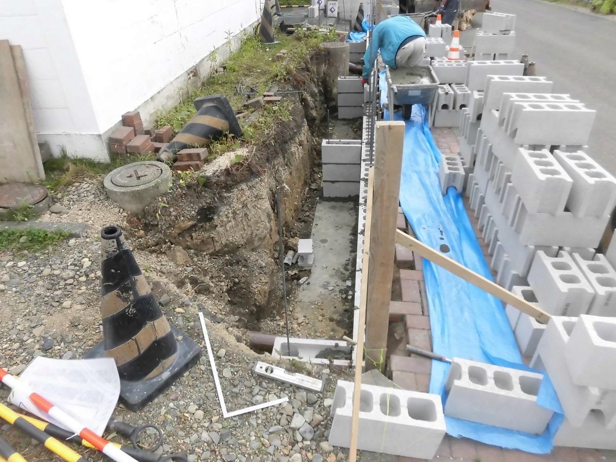 今回は、ブロック塀の修復修繕の工事投稿です。(^-^) 既存のブロック塀が、土圧等で長年にわたり傾き始め今回修復する事になりました。 既存ブロックを解体処理して、新しいブロックで作りきれいな塀ができました。(^^♪