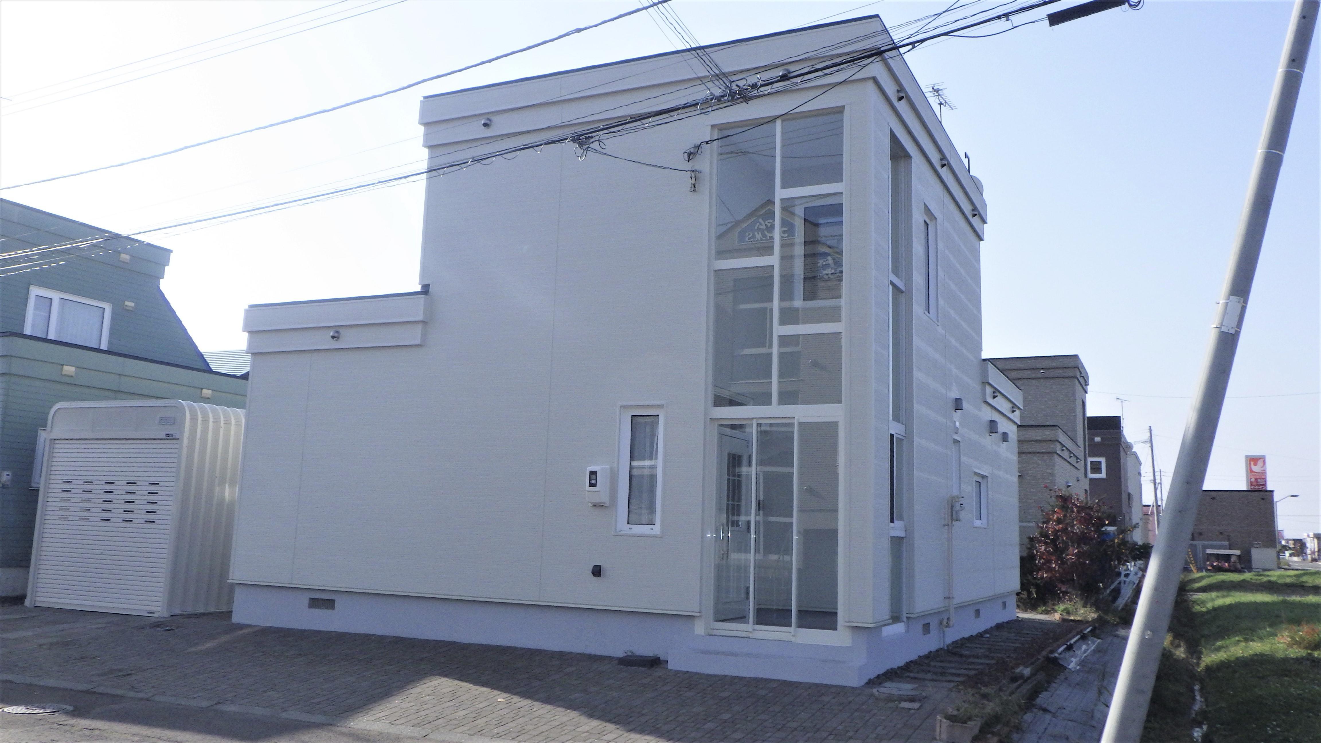 既存、ALCの上から金属サィディング張り施工しました。玄関風除室も引違いからハンガー式に取替ました。全体的に、外壁サィディング・風除室共に施主様が気に入って頂けたので、良かったです。