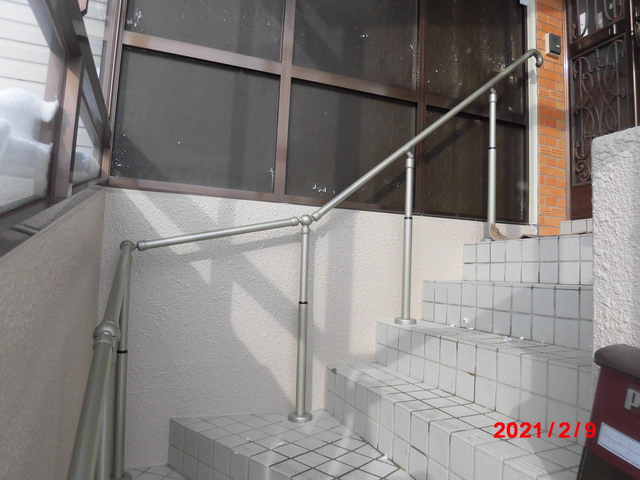 介護保険を申請して、外の急階段に手摺りを付けました。 これで外出する時も、安心ですね。 介護(改修)工事もお任せください。