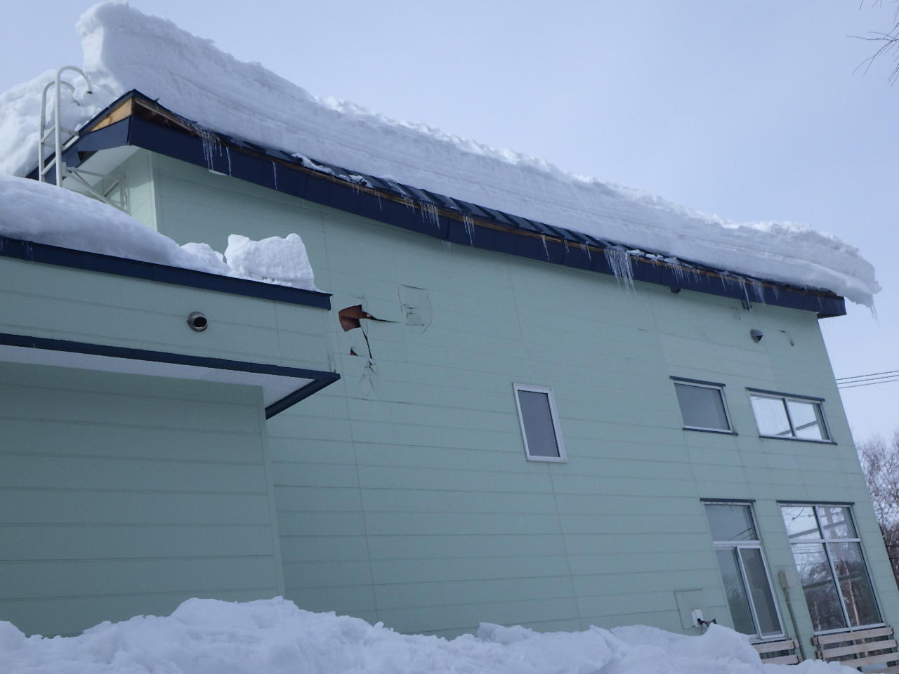 雪害により 屋根の軒先・外壁の修繕工事です。